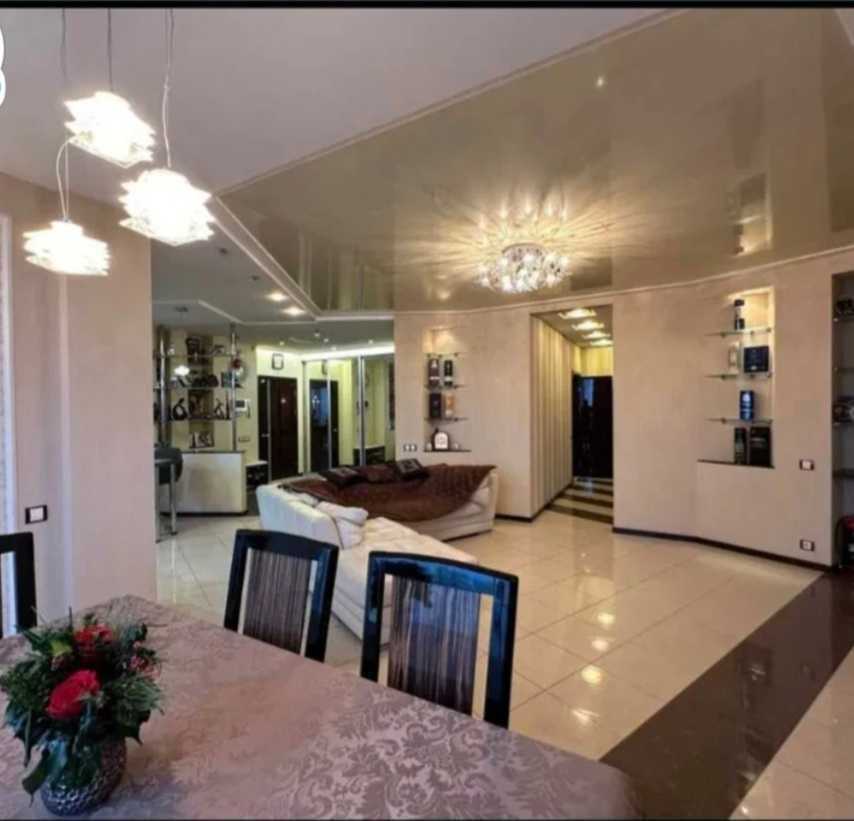 Простора квартира з автономним опаленням на пл. Небесної Сотні, 14, в районі ДК Будівельників. Загальна площа 114 м², розташована на 6-му поверсі 10-поверхового будинку. Квартира має зручне планування: кухня-студія та три окремі кімнати. Виконано сучасний якісний ремонт, є два санвузли. У помешканні залишаються меблі, кондиціонери та побутова техніка. Зручне місце розташування та транспортна розв'язка.