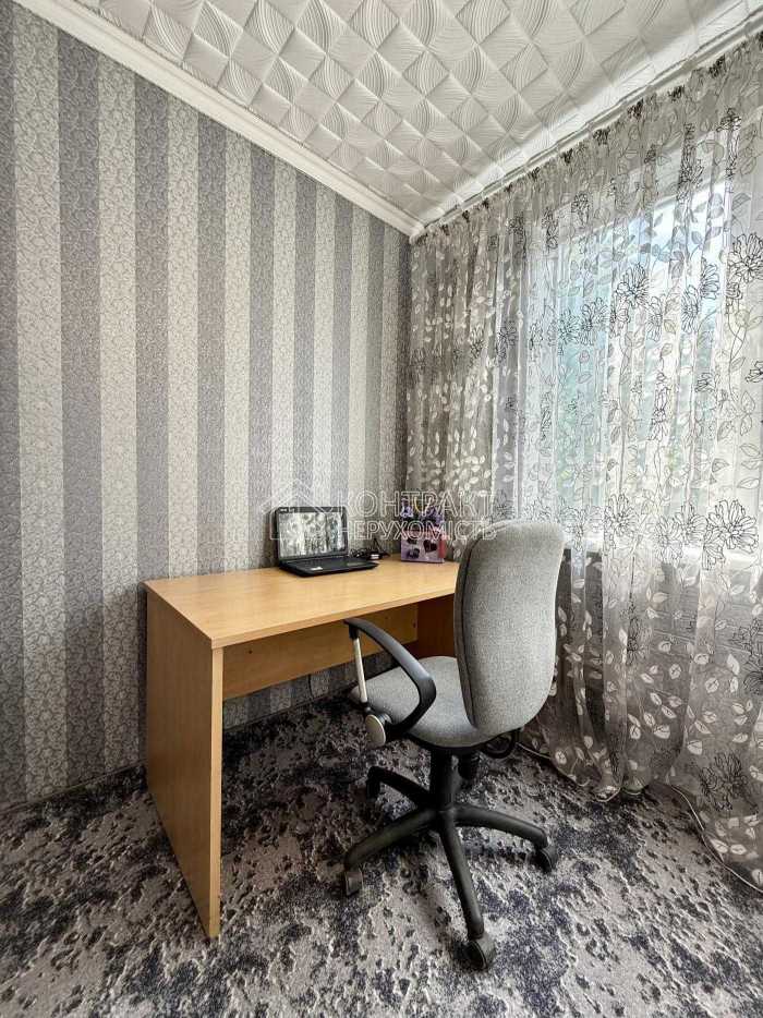 Пропонується стильна 2-кімнатна квартира в Салтівці, по вул. Бучми, 6. Загальна площа 47.5 м², кухня 6.5 м². Квартира з новим ремонтом, оснащена сучасною технікою та меблями. Функціональне планування включає затишну кухню з необхідними побутовими приладами, спальню з великою ліжком та кімнату-кабінет. Лоджія може виконувати функцію робочого місця або зони для відпочинку. Будинок утеплений, з економними комунальними платежами. Зручна локація: поруч ринок, супермаркети та зелена зона, всього 7 хвилин пішки до метро Салтівська.