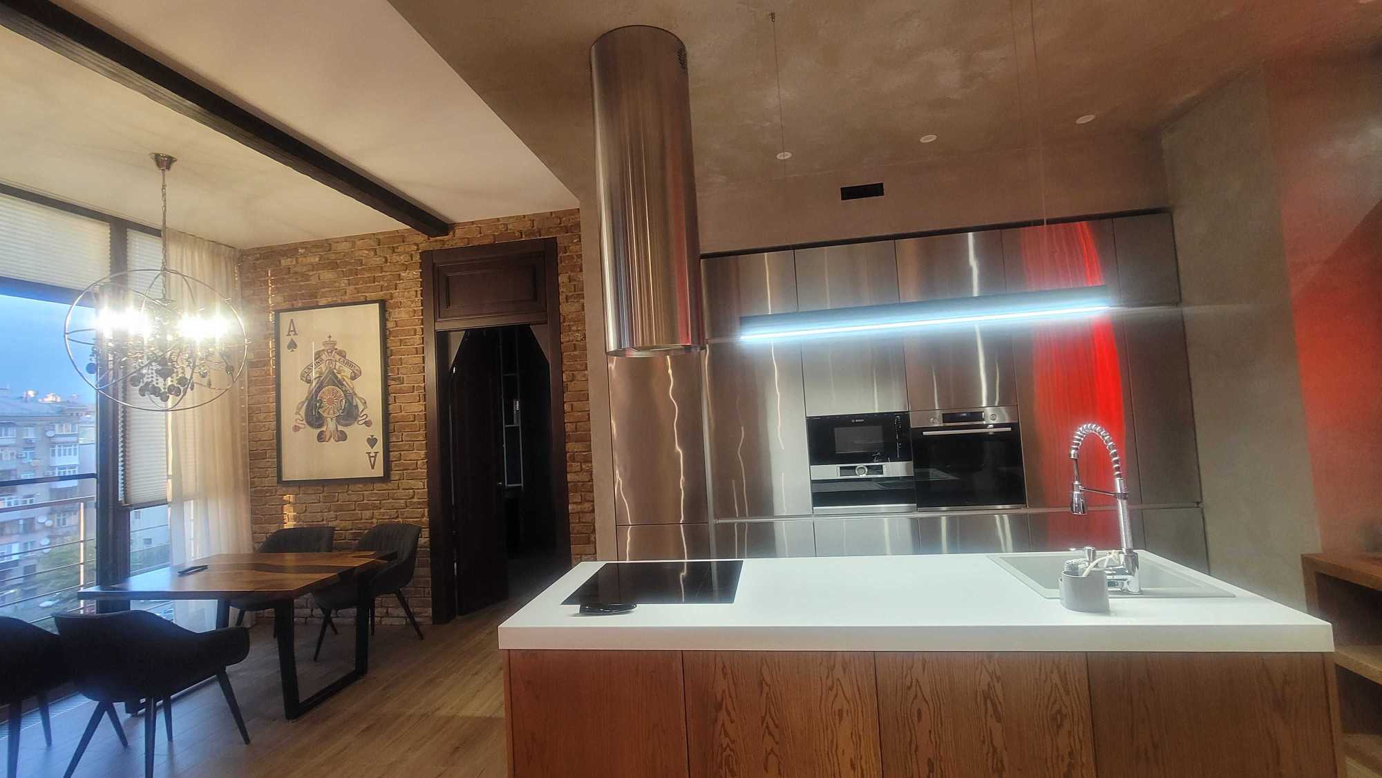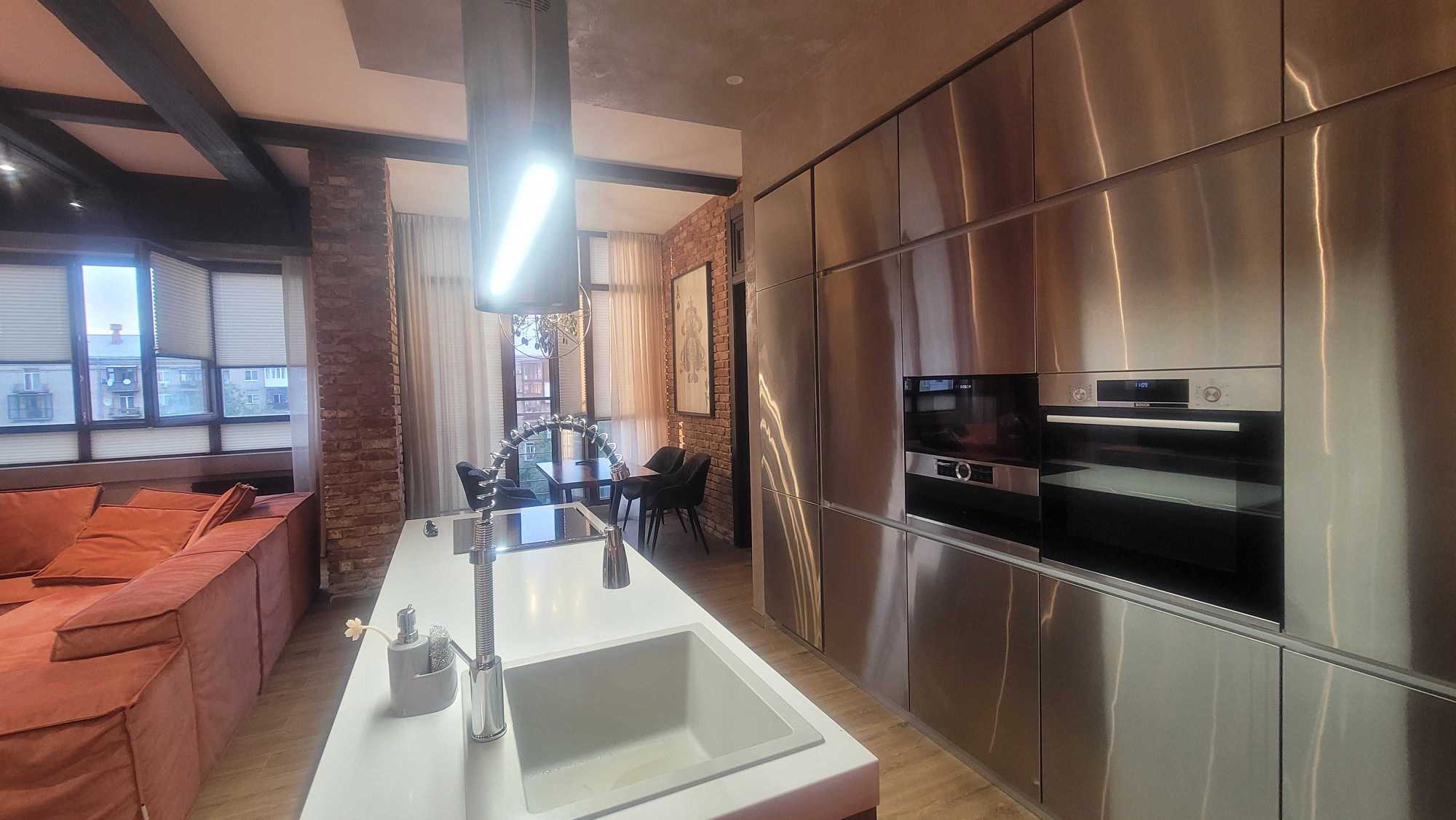 Пропонується до уваги квартира в преміальному ЖК "Будинок на Набережній" на пр.Банному 1. Загальна площа 130 м², розташована на 6 поверсі. Простора кухня-вітальня 55 м², дві окремі спальні (20 м² і 19 м²), гардеробна та пральна зона. Високі стелі 3.3 м, панорамний вид на центр міста. Квартира укомплектована сучасними меблями та технікою. Комплекс з закритою територією, генератором, автономною котельнею та підземним паркінгом. Зручне розташування поряд з парком "Стрілка", набережною та інфраструктурою.