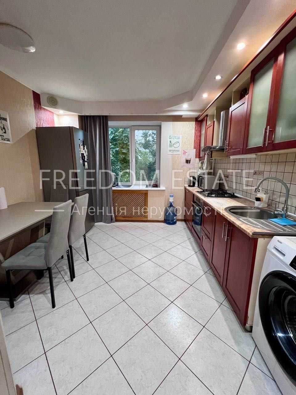 У світлій квартирі з ремонтом на Алексеївці пропонуються чотири роздільні кімнати, кухня, два балкона та гардеробна. Загальна площа 93 м2, квартира розташована на другому поверсі дев'ятиповерхового кирпичного будинку. У дворі й під'їзді підтримується порядок, а будинок має теплий контакт. Район характеризується хорошою інфраструктурою, поряд є магазини та зупинки громадського транспорту, до станції метро Алексеївська — 15 хвилин пішки. Також недалеко розташовані зелений лугопарк та басейни.