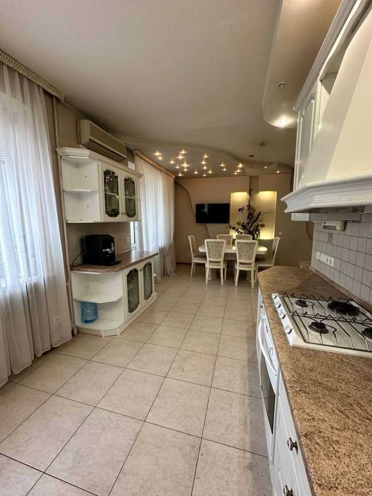 Трикімнатна квартира площею 86 м² розташована на вул. Космічна 47. Формат квартири включає простору кухню-столову та дві спальні. Вона знаходиться на 6-му поверсі цегляного будинку. Інтер'єр виконаний у класичному стилі та має якісний ремонт. Підлога із паркету та плитки, броньовані двері, присутня охорона. Санвузол обладнаний ванною та душовою, інсталяція. Квартира повністю укомплектована меблями та технікою.