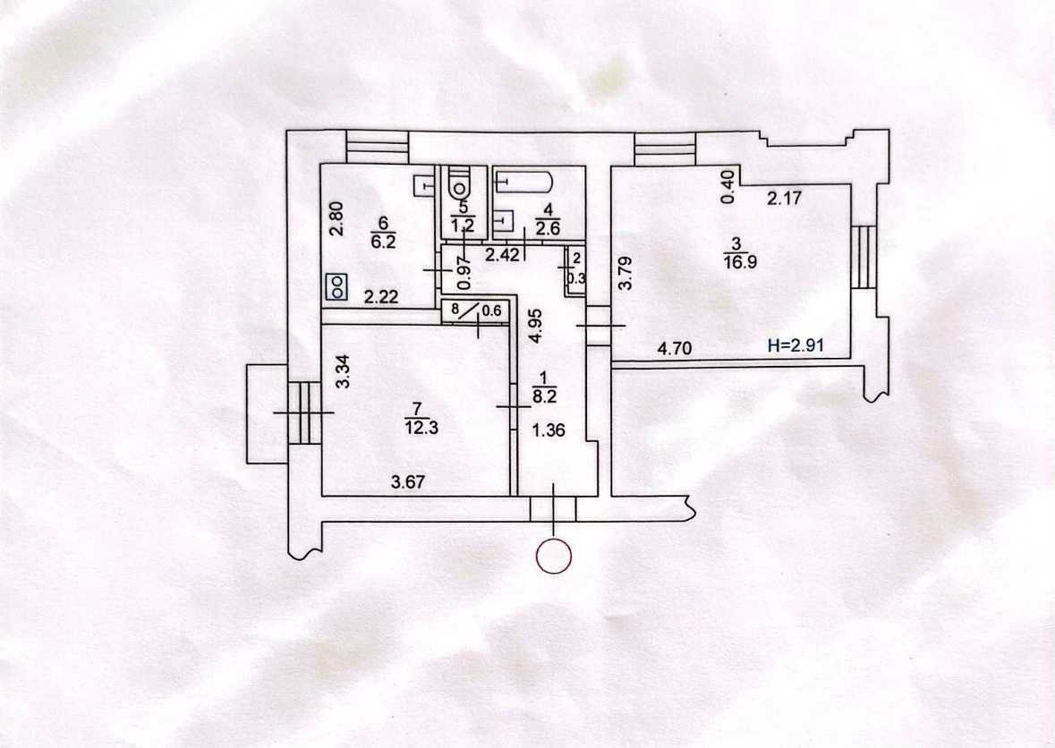 Пропонується квартира в Харкові, що розташована на четвертому поверсі сталінського будинку. Загальна площа складає 48,8 м², з двома роздільними кімнатами площею 16,9 м² та 12,3 м², а також кухнею 6,2 м². Висота стель досягає 2,91 м. У квартирі виконано частковий косметичний ремонт, всі вікна металопластикові, а балкон остеклений. Під'їзд в ремонті і чистий. Всього в 10 хвилинах пішки знаходиться метро "Тракторний завод" і сквери.