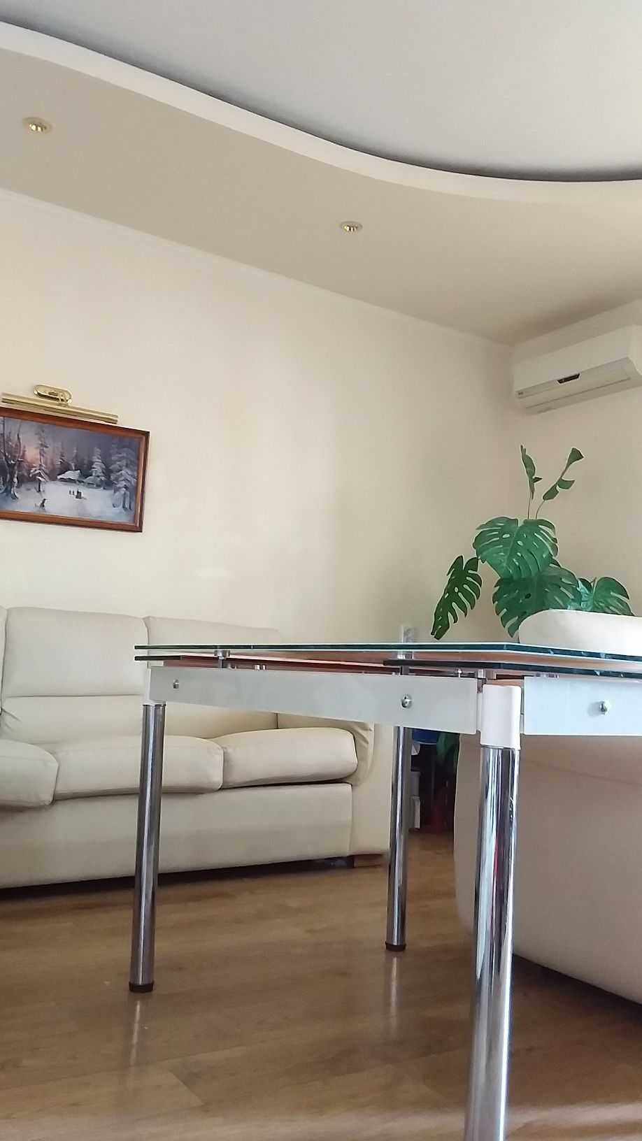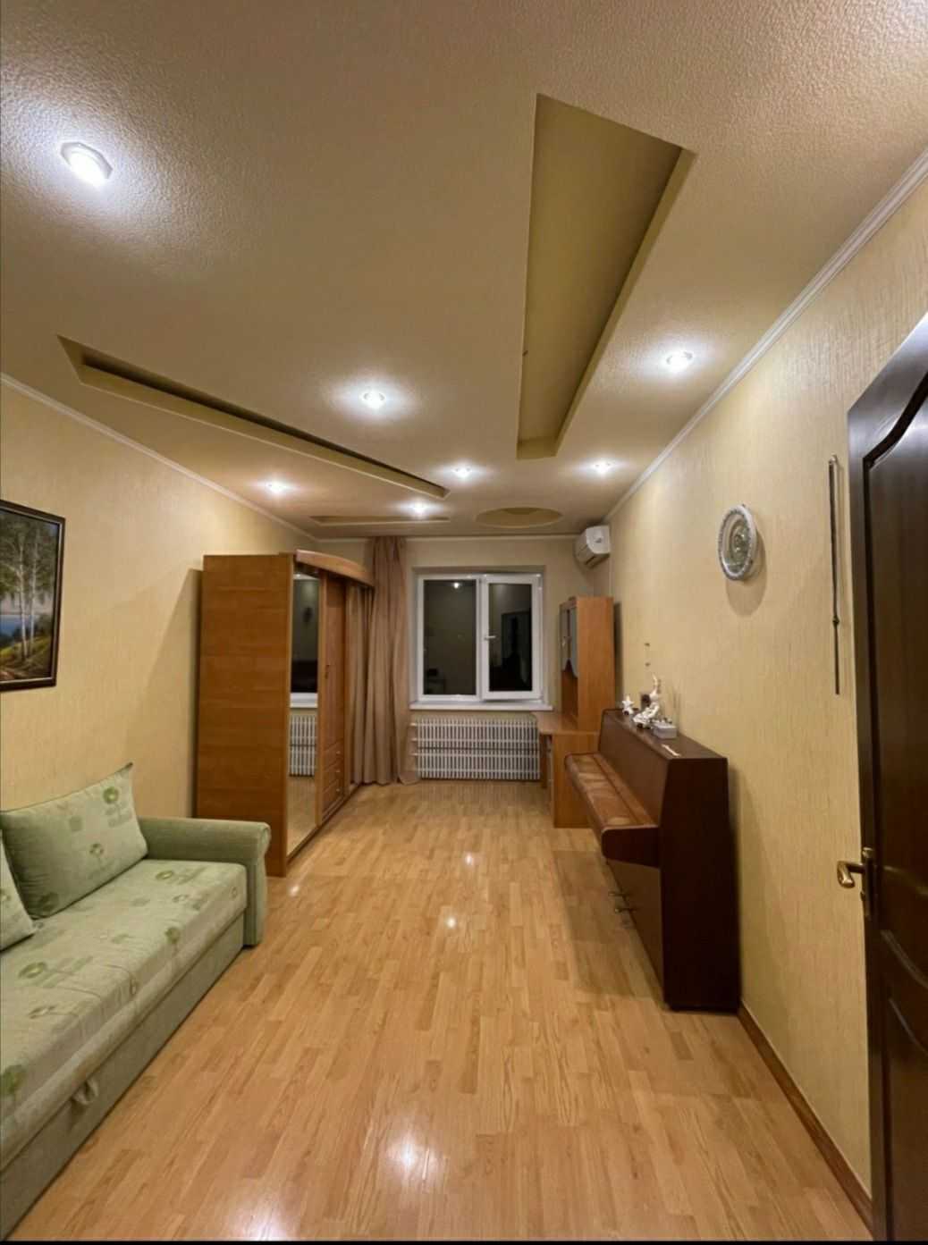 Пропонується квартира в Харкові площею 123 м². В квартирі є три спальні (15, 15, 25 м²) та кухня-студія площею 35 м², а також два санвузли (9 та 2 м²). Великий коридор та стратегічно зручне розташування на 11-му поверсі, де є два ліфти у під'їзді. Вигляд з вікон на станцію метро між такими станціями, як Героїв труда та Студентська.
