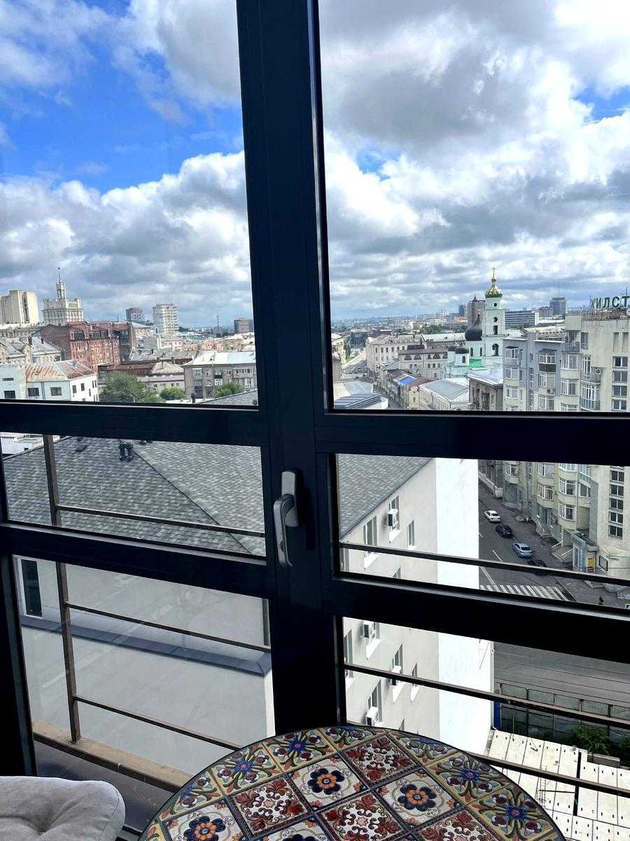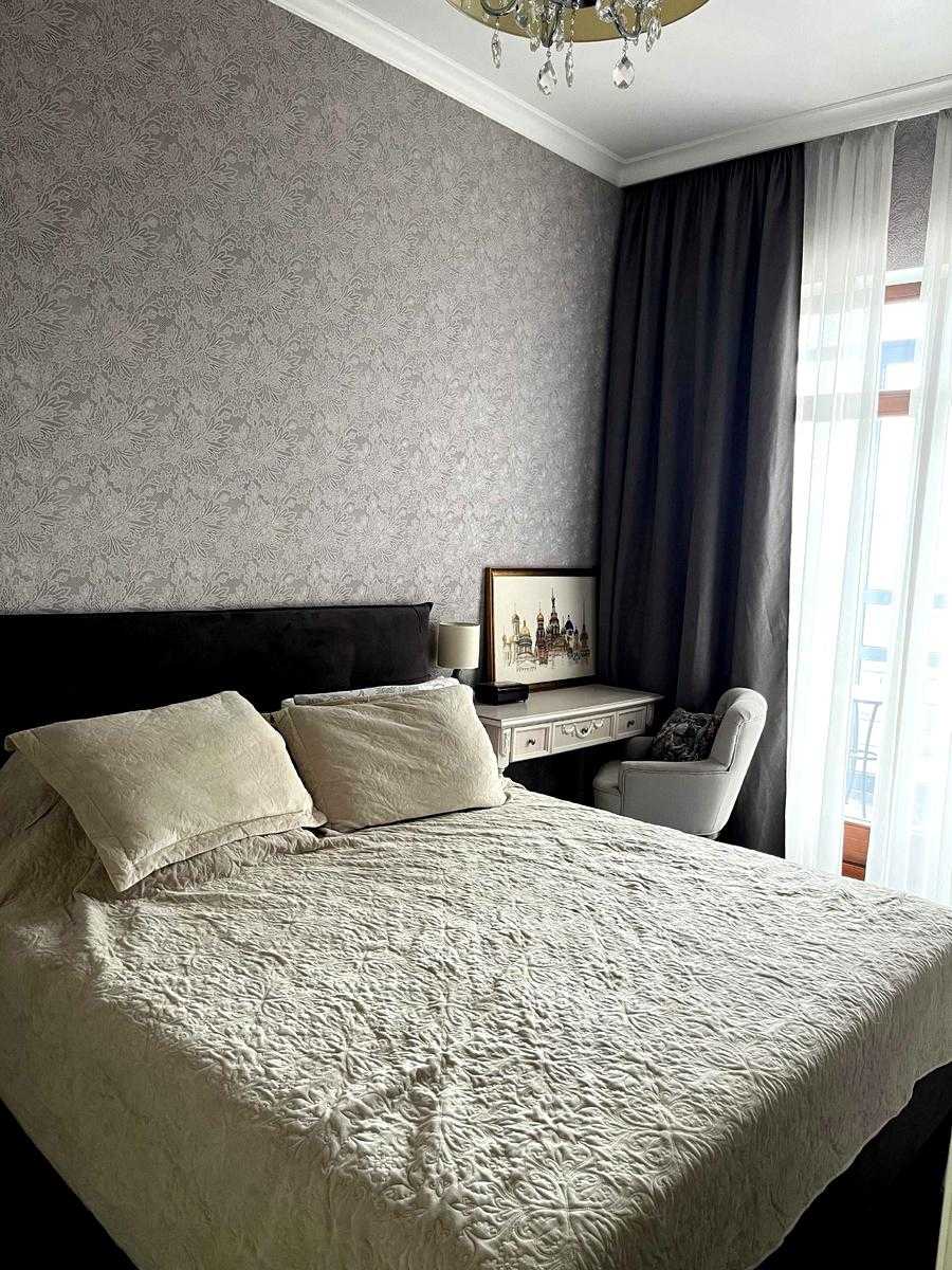 Стильна квартира з роздільним плануванням у ЖК «Будинок на Набережній». Формат включає кухню, кабінет, спальню, санвузол, лоджію та французький балкон. Новий авторський ремонт, власна котельня, підігрів підлоги. Квартира укомплектована меблями та технікою, включаючи кондиціонер, телевізор, інтернет. Панорамні вікна з видом на набережну. ЖК забезпечений цілодобовою охороною, відеоспостереженням, підземним паркінгом. Розташована в історичному центрі, поруч парк, архітектурні пам’ятки, кафе. Висота стелі 3.4 метра.