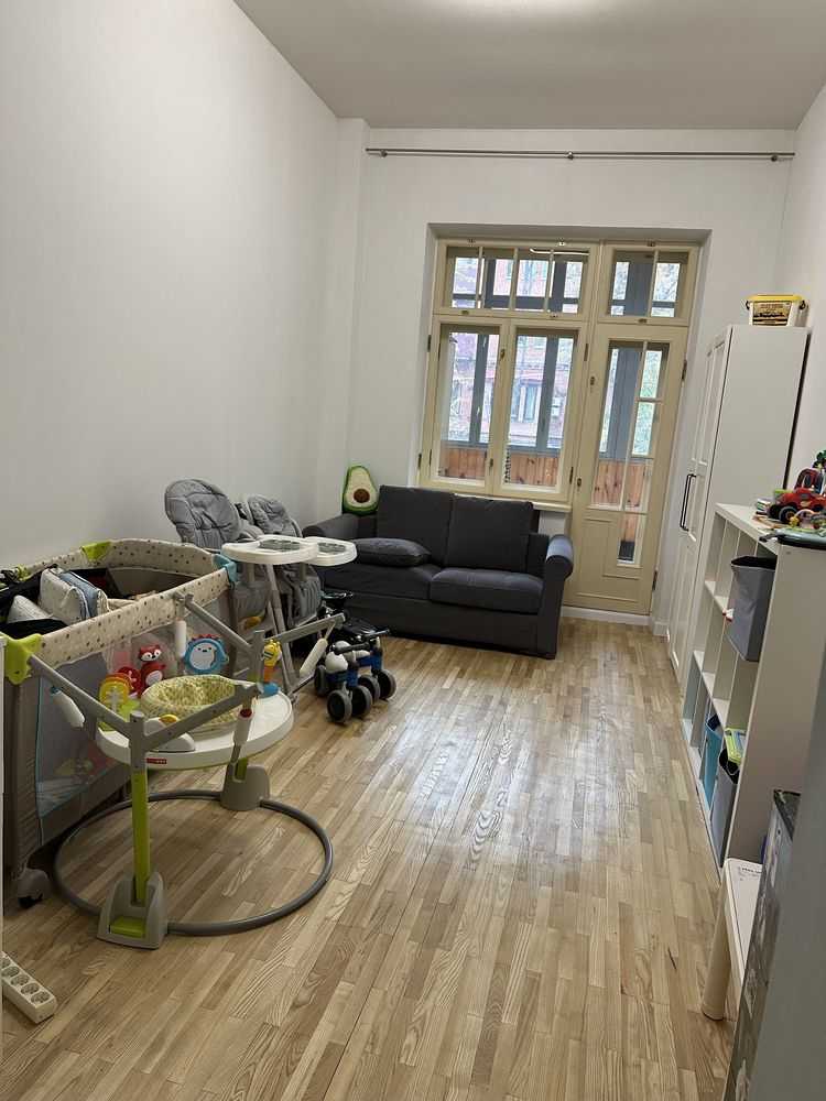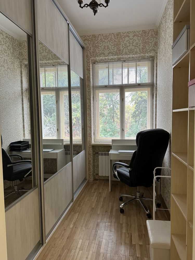 Пропонується 5-кімнатна квартира в старому тихому центрі Харкова, в районі метро Пушкінська. Розташована на другому поверсі чотириповерхового дореволюційного цегляного будинку з товстими стінами та високими стелями 3,37 м. Загальна площа квартири становить 98,9 кв.м. Житло двостороннє, з відчыненими балконами як на вулицю, так і у двір. До квартири також належить гараж в подвір’ї площею 22,1 кв.м.