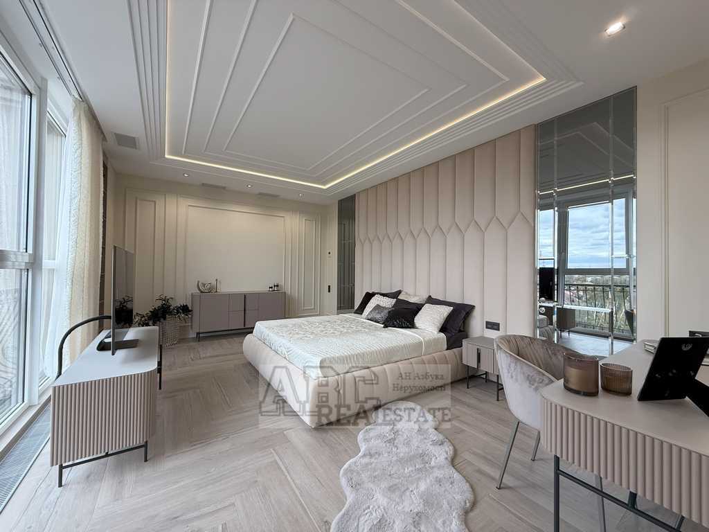 Квартира знаходиться в ЖК "Резиденція" на вул. Новгородській, 46. Загальна площа становить 146 м². У квартирі виконано дизайнерський ремонт з використанням якісних матеріалів. Встановлена безшумна система клімат-контролю та продумана шумоізоляція. Формат: дві спальні, велика кухня-їдальня, два гардеробних, два санвузли та два балкони. ЖК має закриту територію з охороною, дитячий майданчик, гостьову парковку та зручну транспортну розв'язку. У пішій доступності магазини, ресторани, розважальні зони.