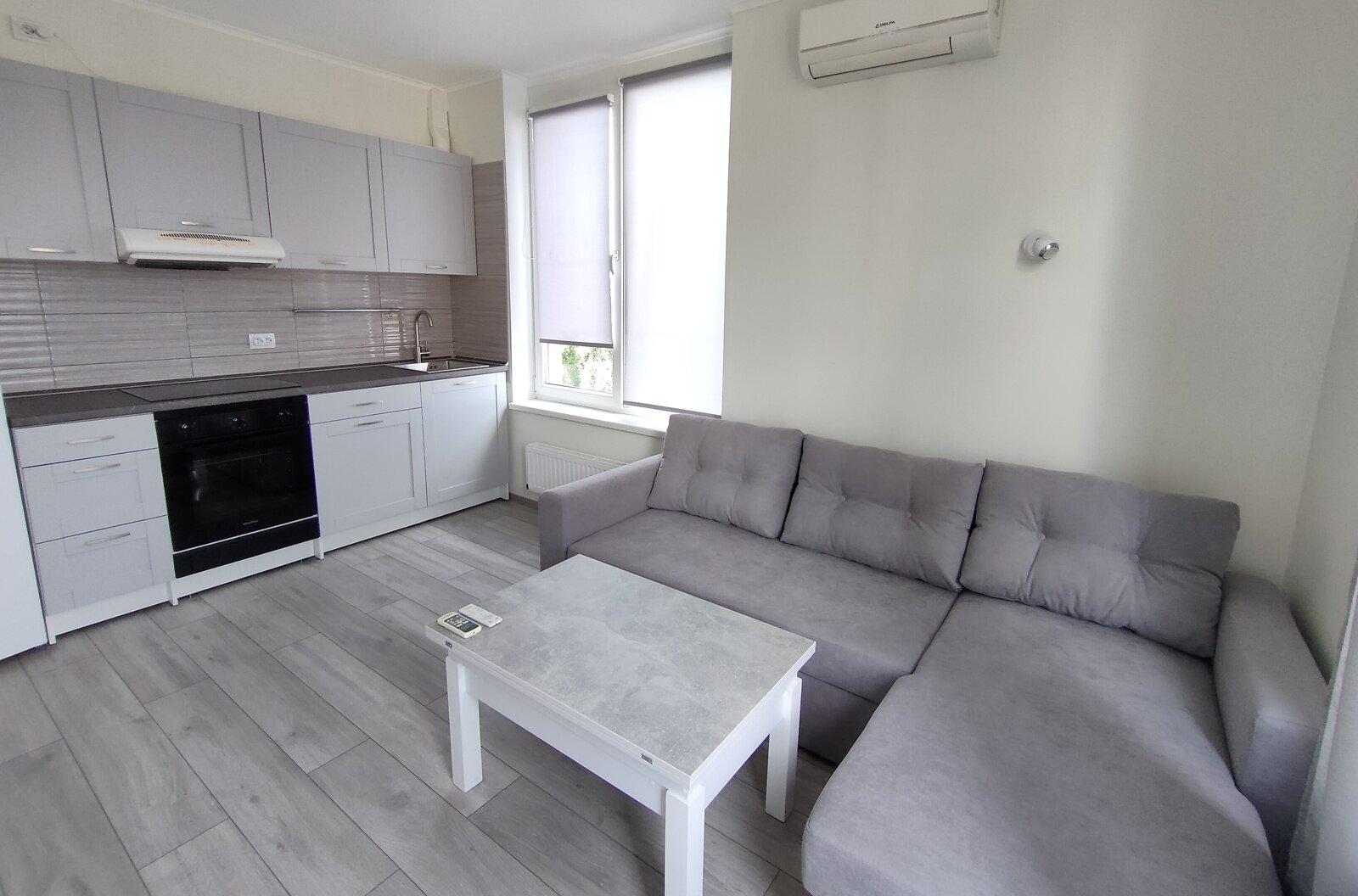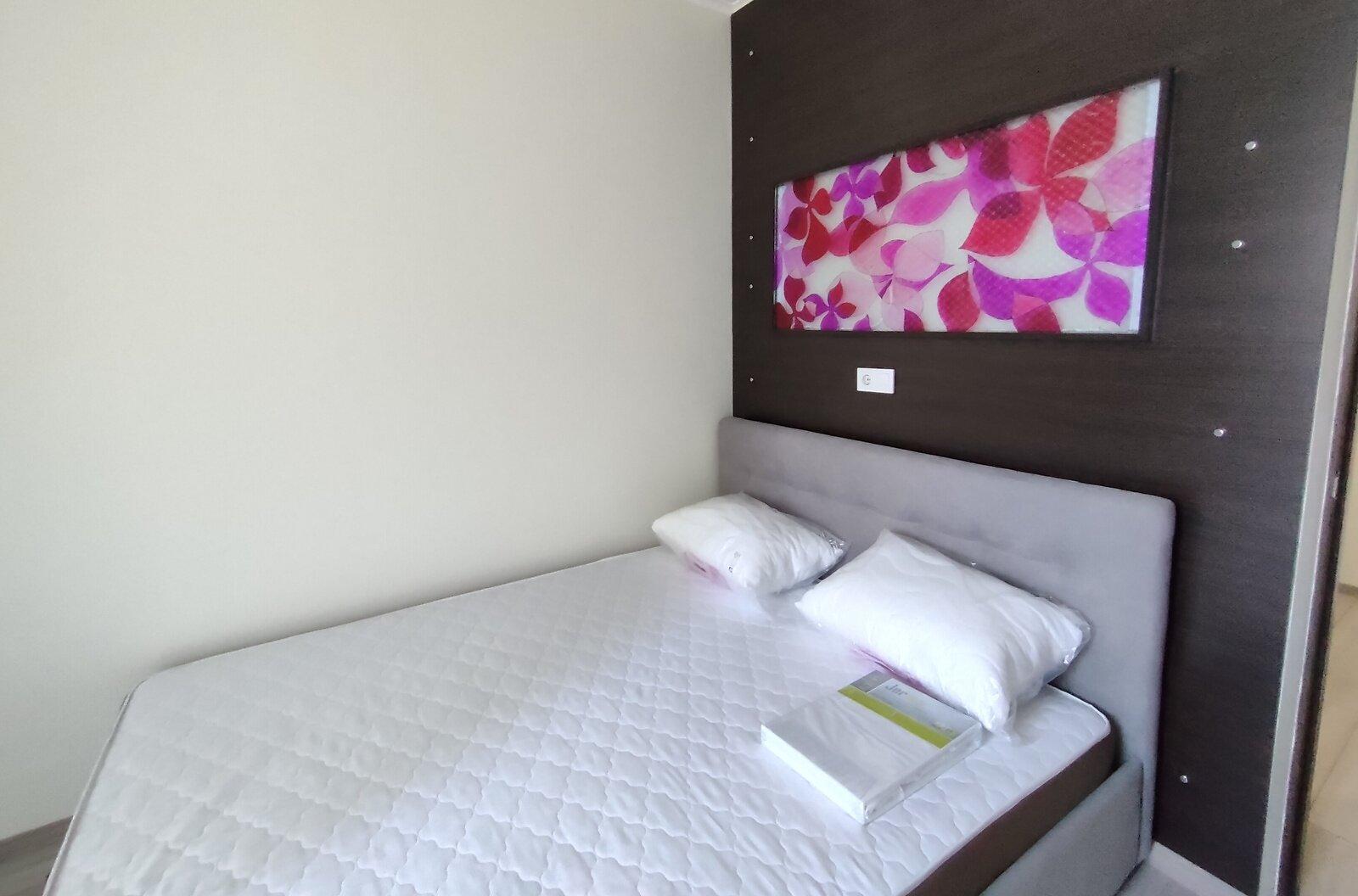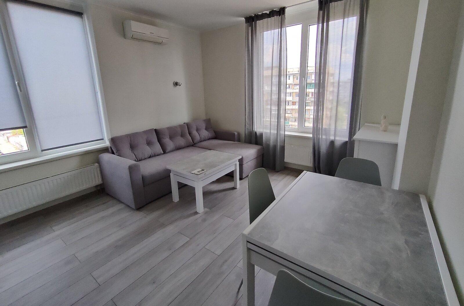 Квартира-студія з окремою спальнею площею 40 кв.м. розташована в ЖК 'Богатирський', побудованому в 2014 році. Оснащена новою технікою та меблями, серед яких два комода, два великих шафи та затишний м'який куточок. На кухні є мікрохвильова піч, електрична поверхня, духовка та холодильник. Квартира світла та простора, має свіжий ремонт, а вікна виходять у внутрішній двір. Будинок обладнаний консьєржем та відеонаглядом, що забезпечує комфорт і безпеку мешканців. Зручна локація, всього 10 хвилин пішки до станції метро 'Героїв Дніпра'.