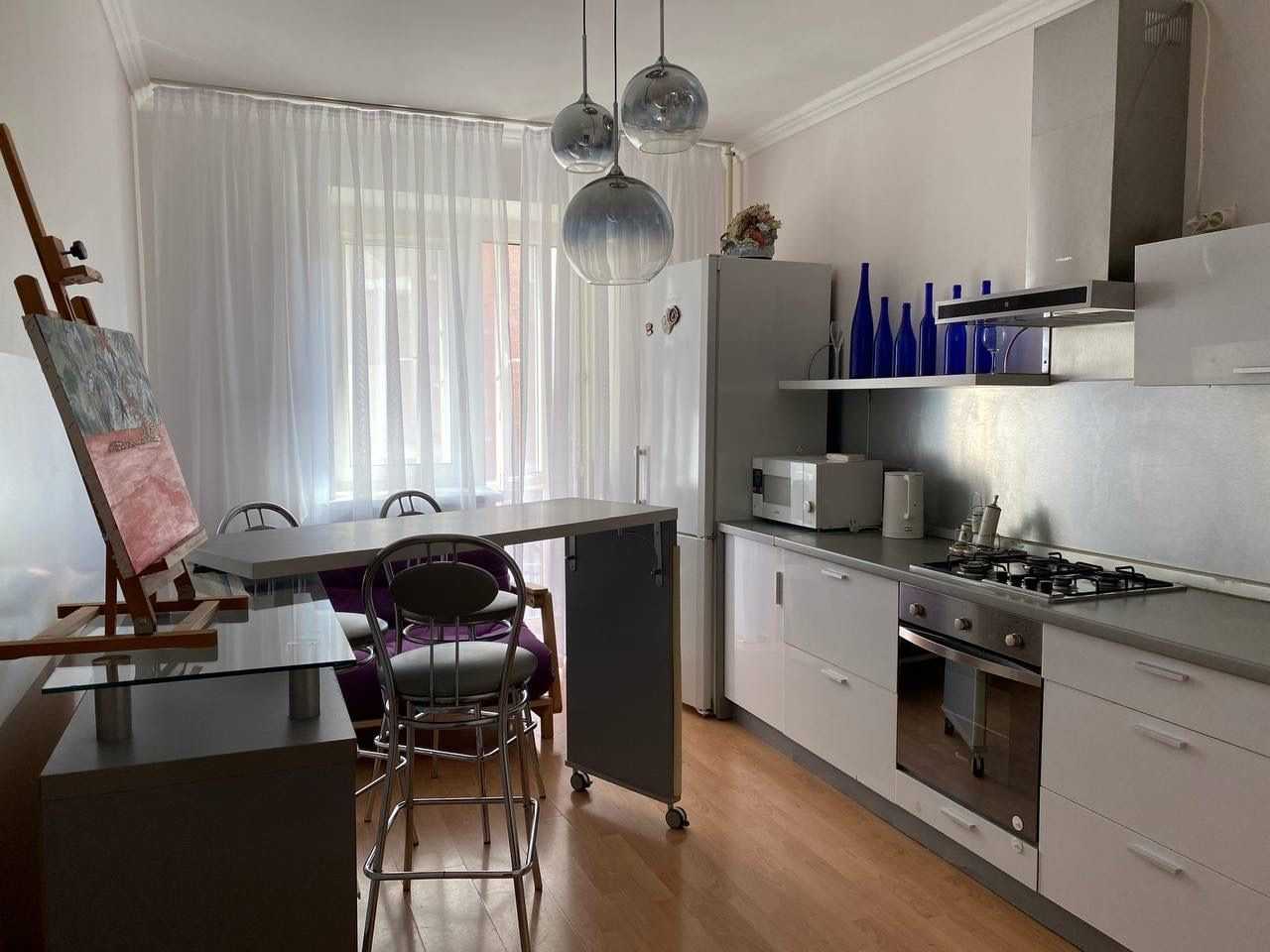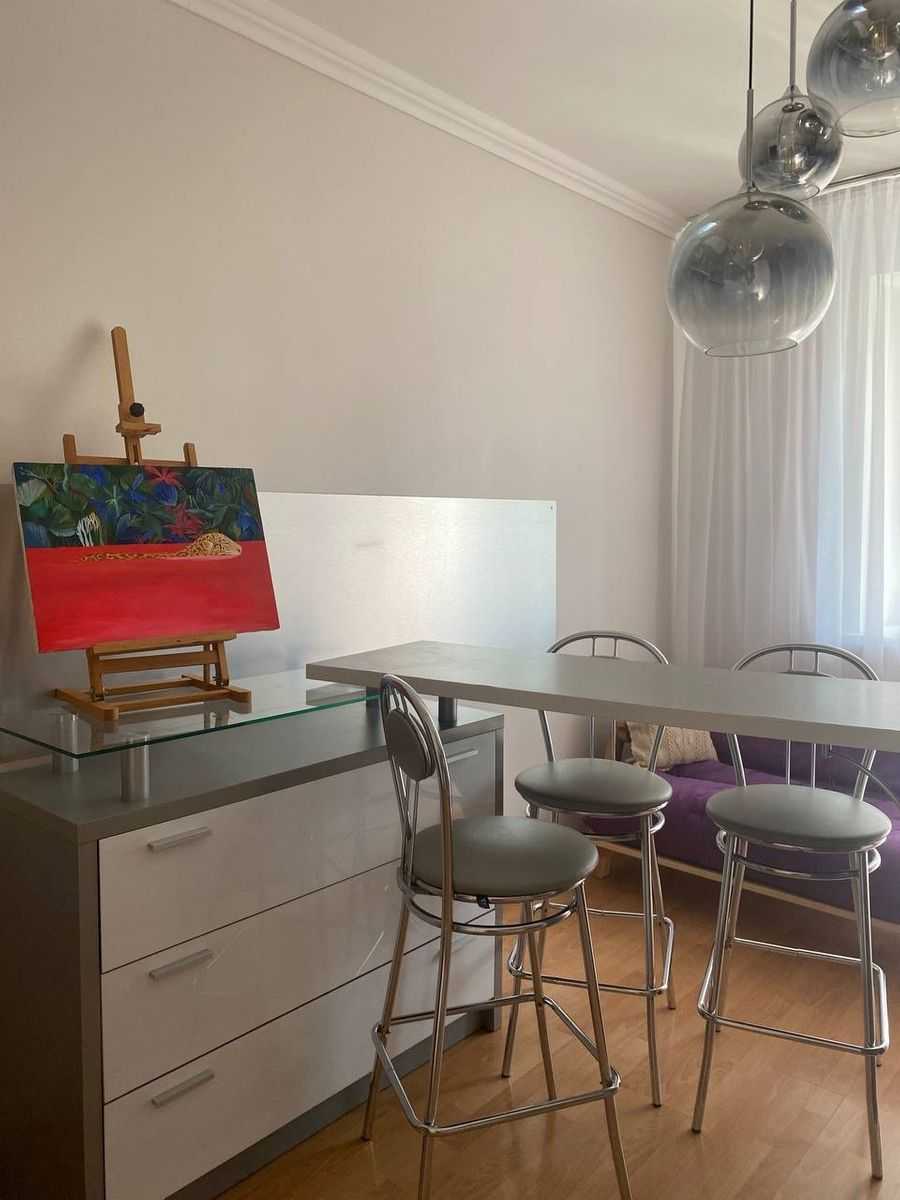 Квартира розташована на Введенській вул., 29/58 у Подільському районі Києва. Нова, перша здача. Площа включає дві роздільні кімнати, обладнані сучасною технікою: телевізор, холодильник, пральна машина, мікрохвильовка та кондиціонер. Є централізована гаряча вода та опалення, а також лічильники. Вдале розташування: всього в 3 хв. до Спортлайфу, гімназії та лікарень. До станцій метро Тараса Шевченка - 7 хв., Контрактова - 15 хв.