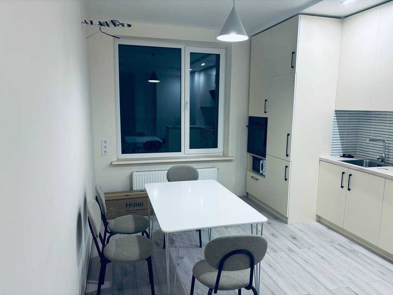 Пропонується 2-к квартира в ЖК Метрополіс на вул. Академіка Заболотного, 1Б. Площа 70 м2, розташована на 6-му поверсі 34-поверхового будинку. Квартира має дві окремі кімнати та кухню, обладнану технікою: духова шафа, мікрохвильова піч, посудомийна машина, витяжка, винний холодильник і кондиціонер. Два санвузли оснащені бойлерами, пральною та сушильною машиною. ЖК забезпечує охорону, є дитячий майданчик та парковка. У пішій доступності гіпермаркет, спортзал з басейном, Голосіївський парк та метро.