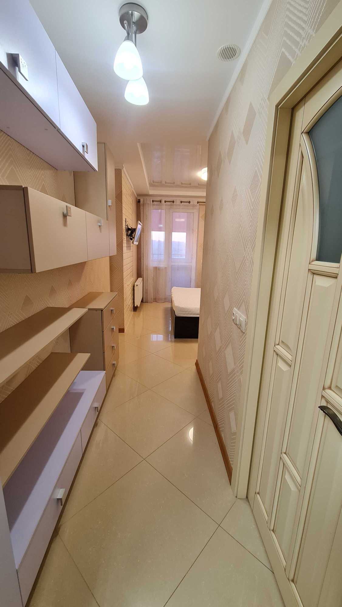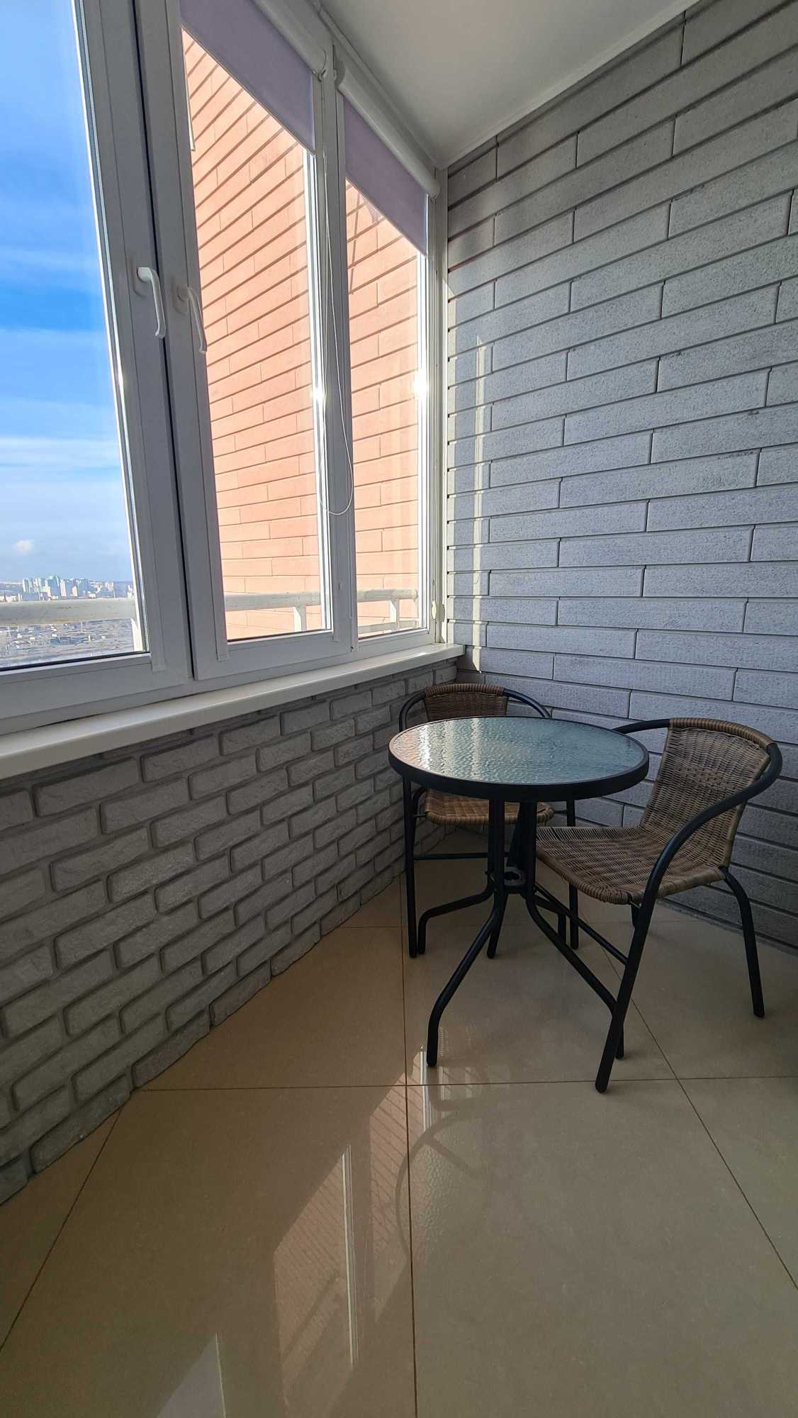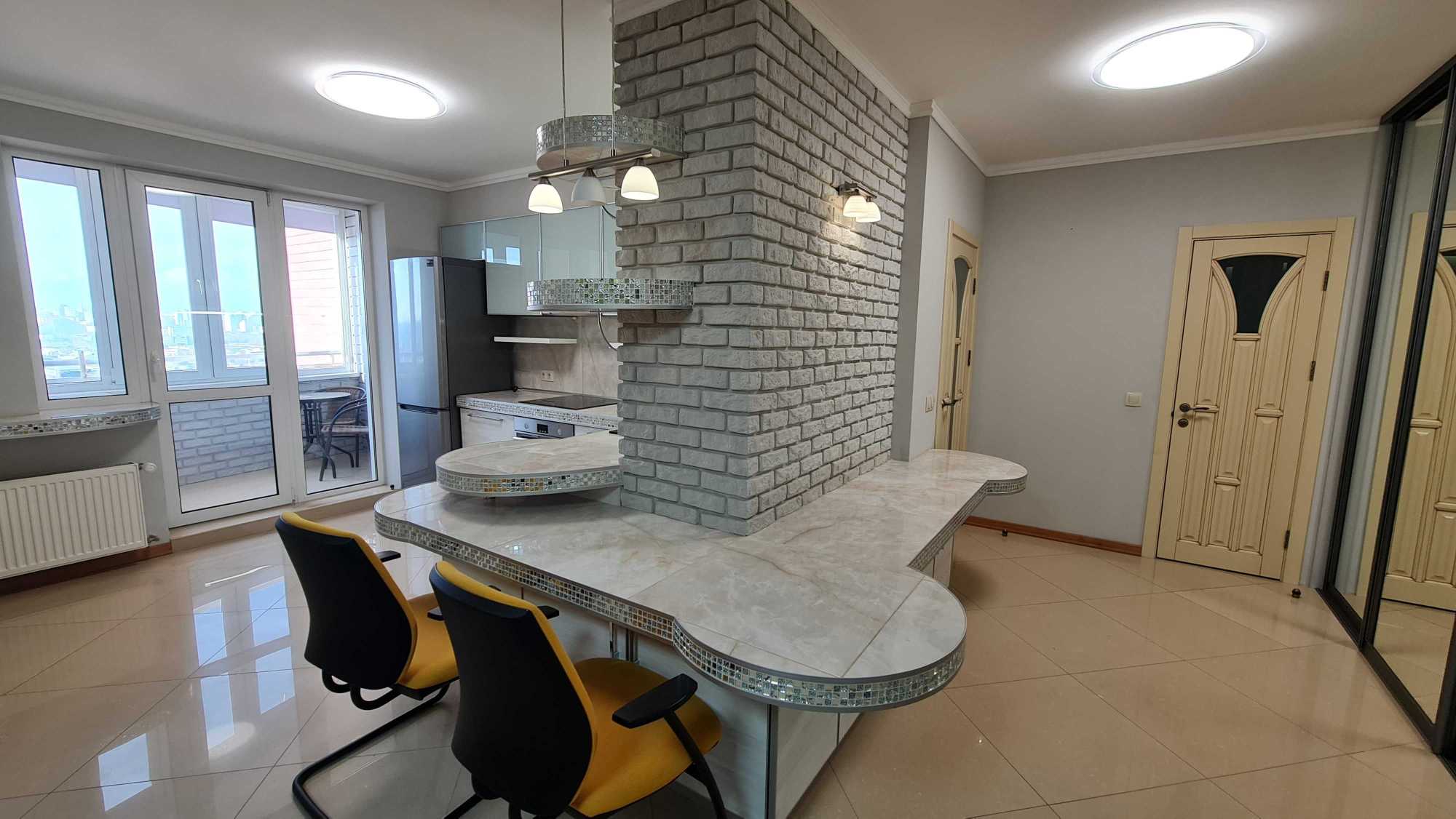 Пропонується простора квартира в сучасному будинку на вул. Героїв полку Азов, 8. Загальна площа складає 73 кв.м, розташована на 23-му поверсі. Квартира містить кухню-вітальню з виходом на балкон, кабінет, ізольовану спальну кімнату з власною ванною кімнатою та ще один балкон, а також гостьовий санвузол. Всі приміщення повністю укомплектовані меблями та технікою. У будинку передбачені послуги консьєржа та охорони, а також закрита територія.