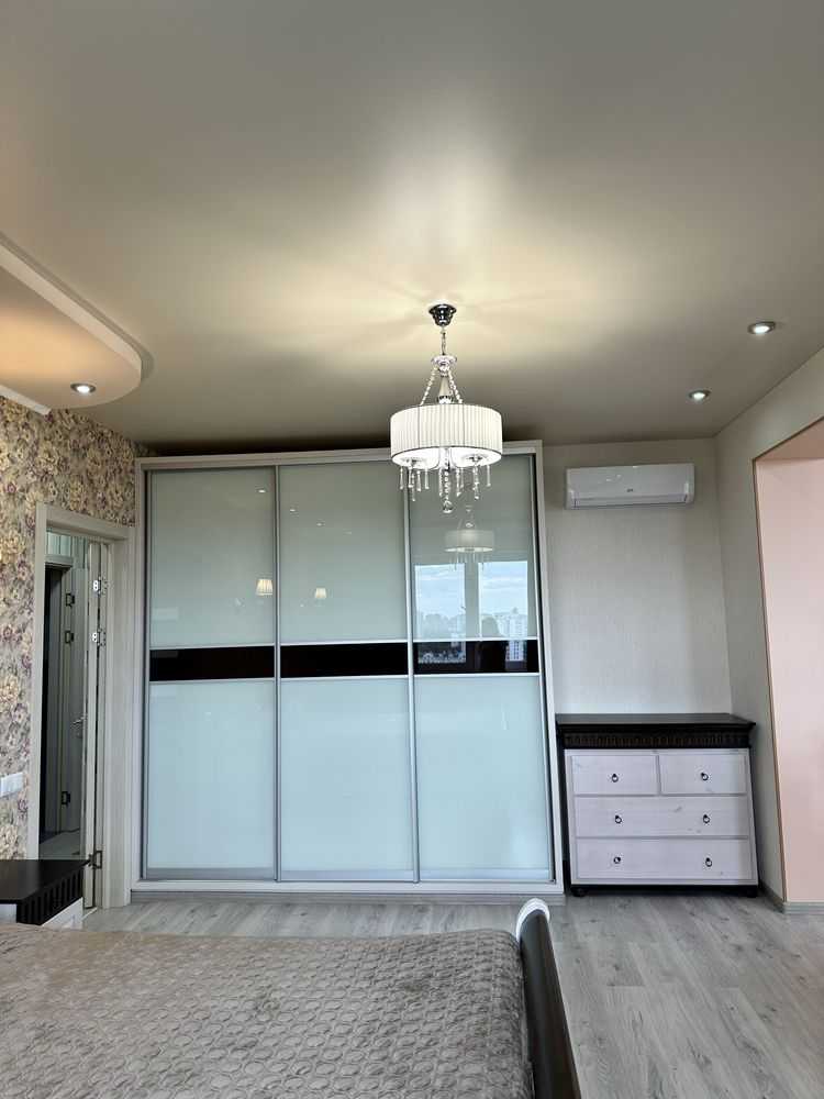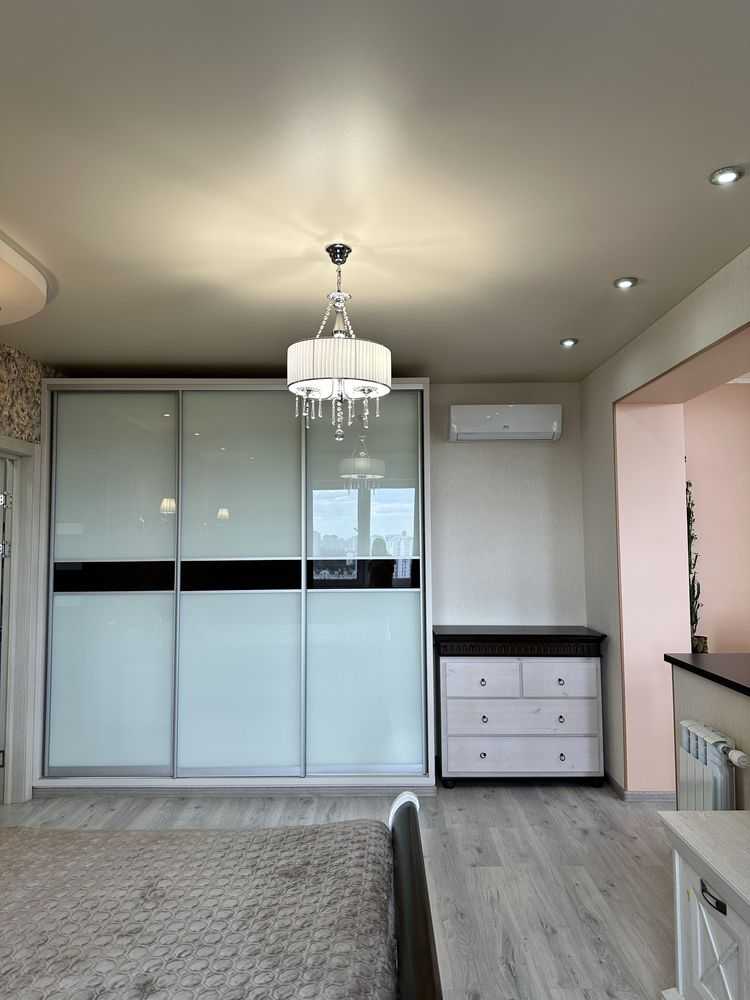 Пропонується 2-кімнатна квартира з євроремонтом на 23 поверсі в ЖК Міністерський, Мінський масив. Загальна площа складає 76 квадратних метрів. Будинок обладнаний інверторами, які забезпечують безперебійну роботу води, тепла та ліфта під час відключення електрики. У квартирі є вся необхідна меблі та техніка: посудомийна машина, духовий шаф, мікрохвильова піч, холодильник, морозильна камера, пральна машина, телевізор та інше. Кухня виконана з каменю та натурального дерева. Поряд ліс і озеро, зручний транспорт до станцій метро.