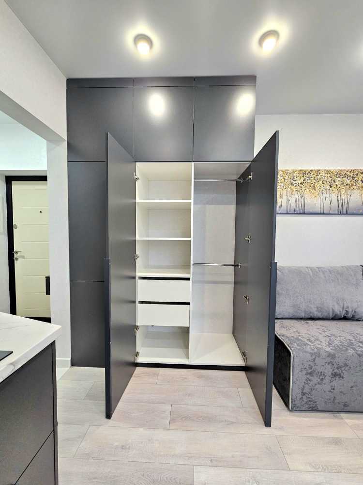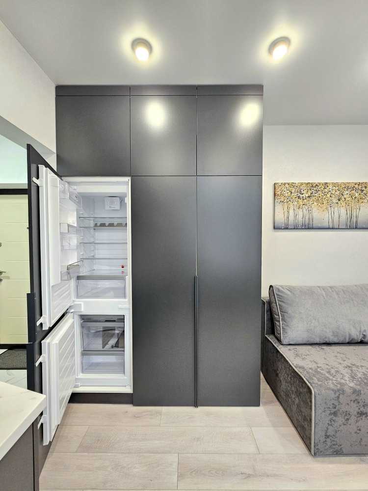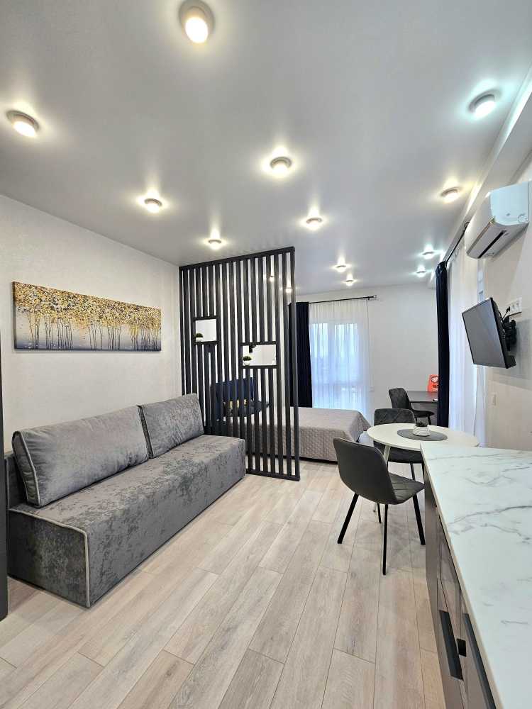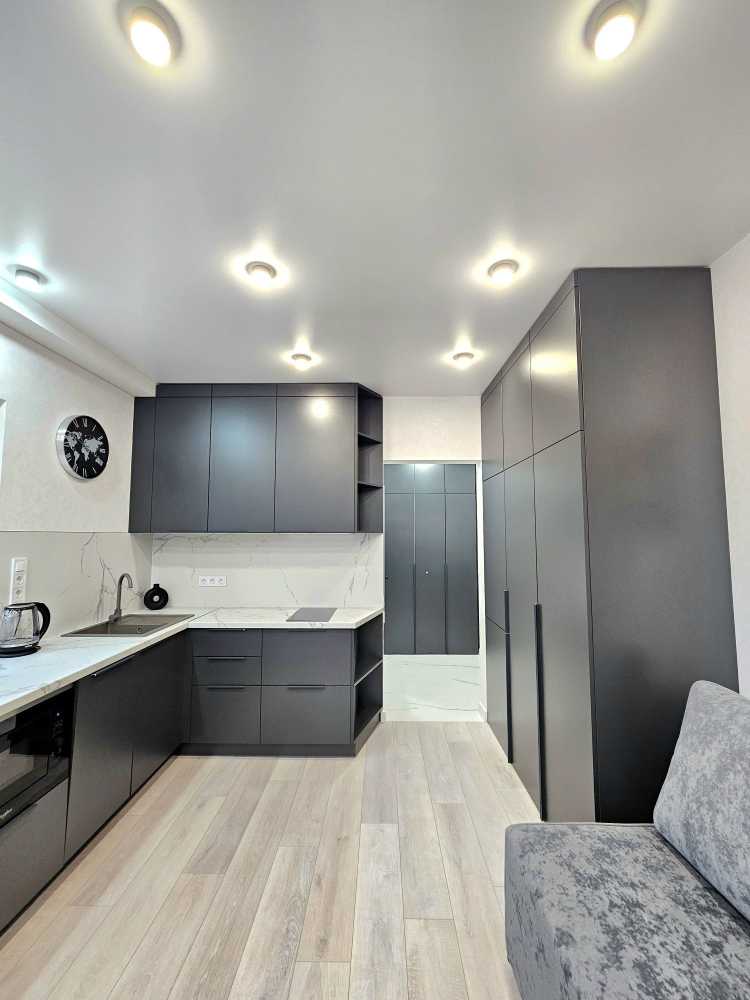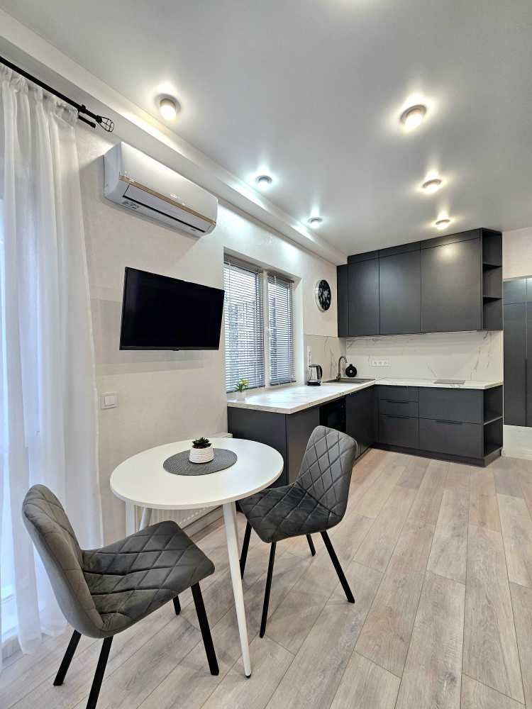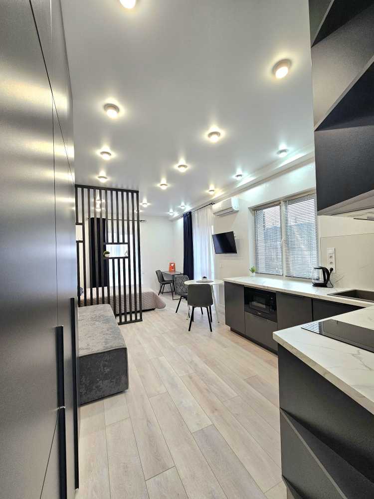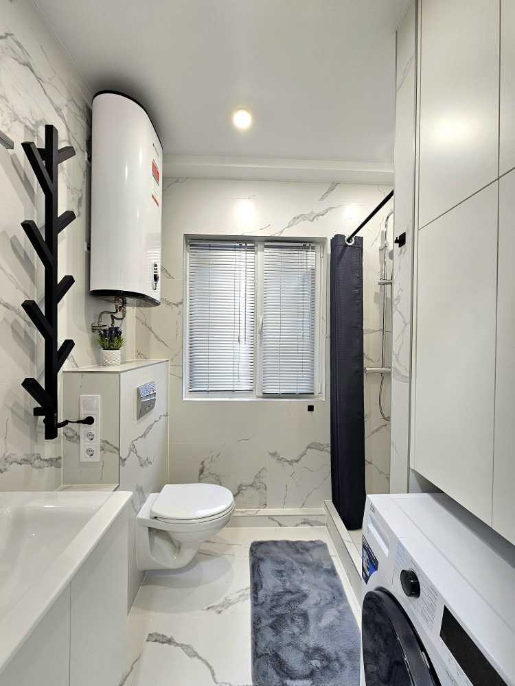 Пропонується стильна квартира у ЖК Нова Англія, що відрізняється сучасним дизайном та комфортом. У квартирі є потужна система безпеки Ajax, підлога з підігрівом, інверторний кондиціонер та прально-сушильна машина. Кухня-вітальня обладнана всією необхідною технікою, включаючи мікрохвильову піч та посудомийну машину. Простора спальня зонована робочим місцем. ЖК має розвинута інфраструктуру: магазини, кав'ярні, безпечну територію з охороною та паркуванням. Відключення електроенергії не впливають на комунікації, що забезпечує комфортне проживання.