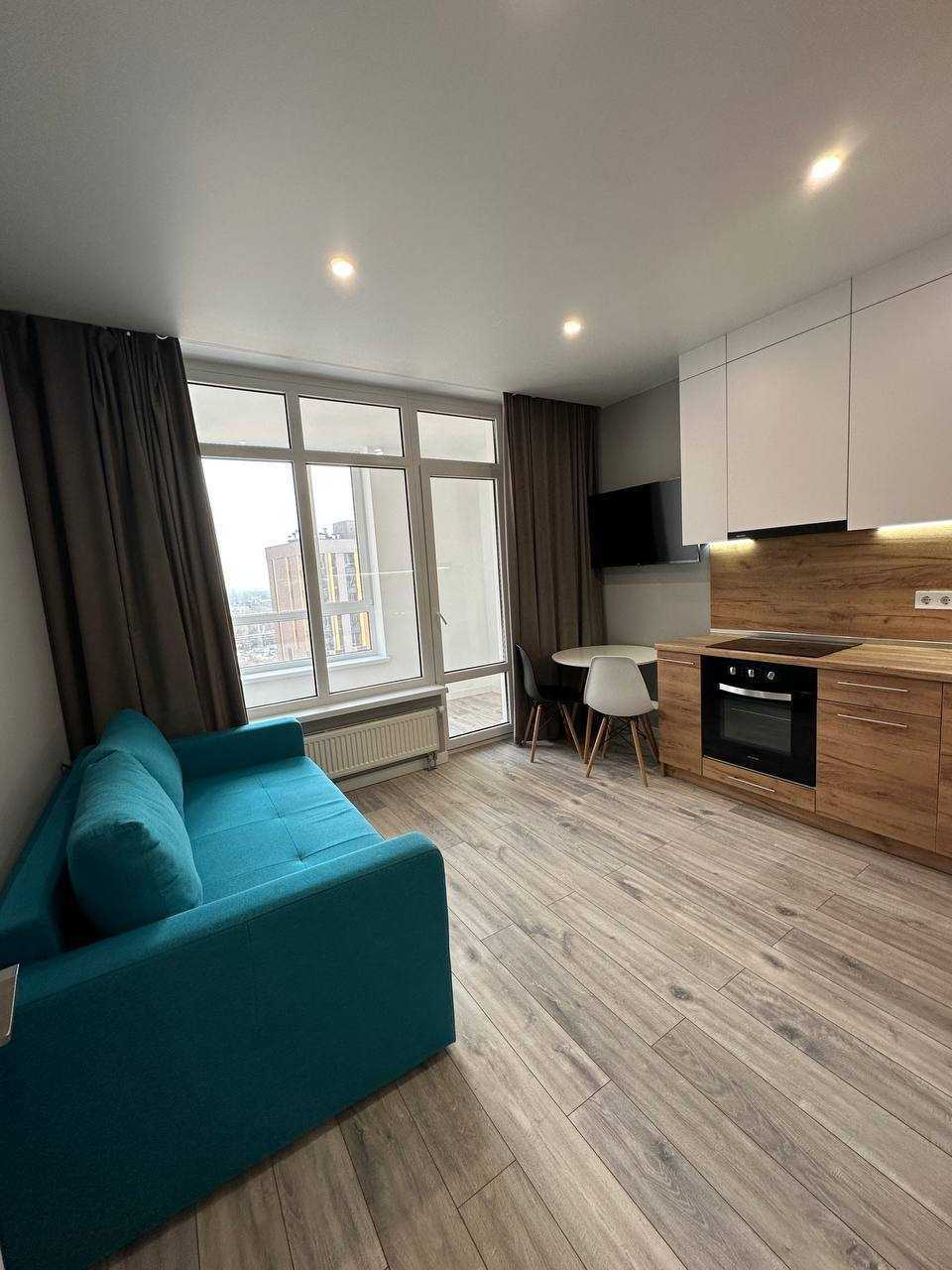 Пропонується світла та затишна 1-кімнатна квартира площею 46 м² у ЖК "Svitlo Park" на вул. Наддніпрянське шосе. Квартира розташована на 17-му поверсі 25-поверхового будинку. В кімнаті — зручне двоспальне ліжко, а в просторій кухні-вітальні є все необхідне. Санвузол, балкон, шафа-купе та гардеробна забезпечують комфортне проживання. Виконано сучасний ремонт, використано якісні матеріали. Комплекс має ландшафтний дизайн, спортивні та дитячі майданчики, магазини і кав'ярні поруч, зручний доступ до транспорту.