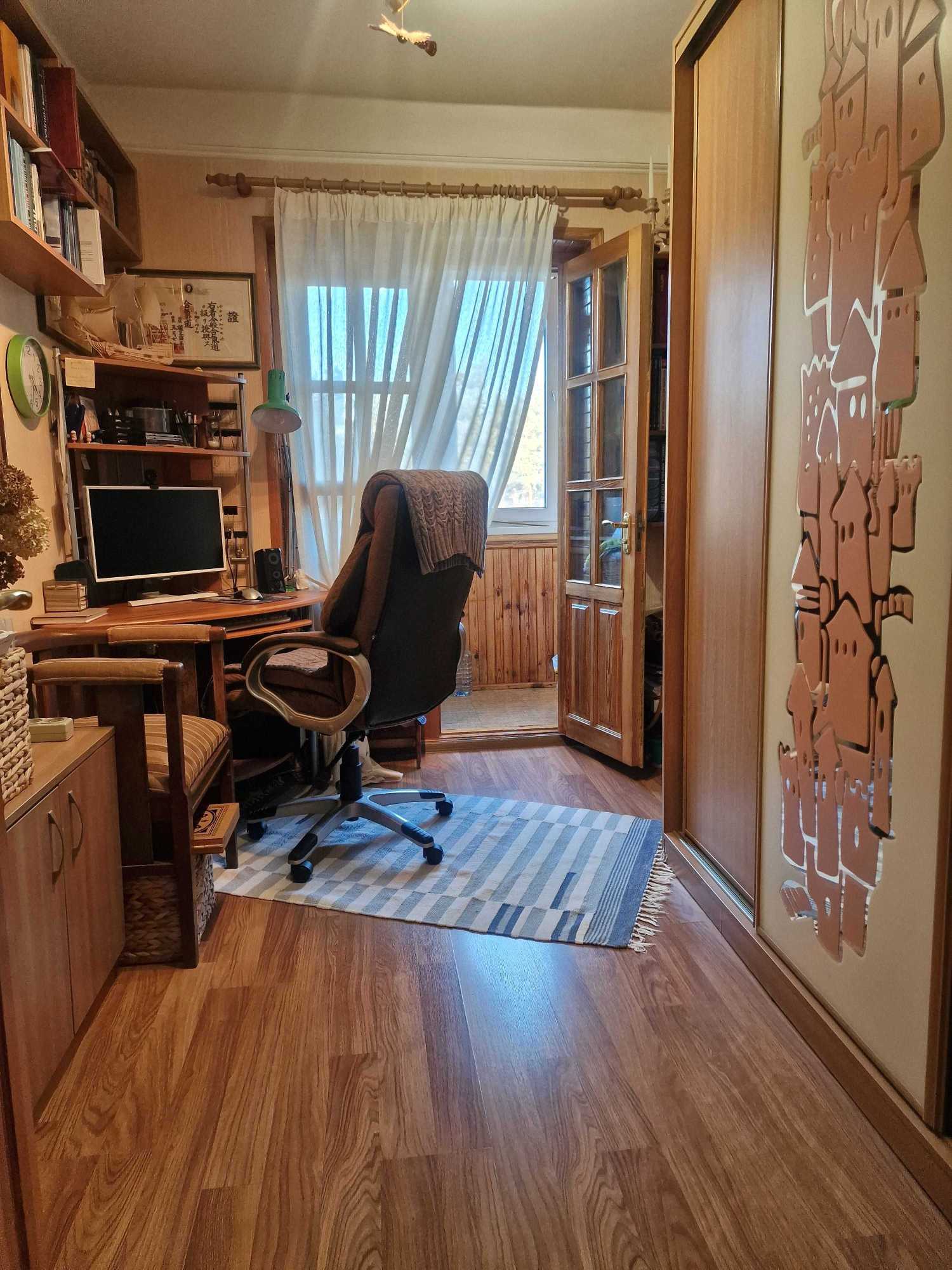 Пропонується квартира в Деснянському районі Києва, в екологічно чистому і зеленому місці. Простора 4-х кімнатна квартира включає кабінет, спальню, дитячу та вітальню. Вікна та внутрішні двері виконані з натурального дерева, підлога покрита плиткою та ламінатом. У спальні встановлено англійський склопакет із сонцезахисним покриттям. Два засклені та утеплені балкони доповнюють комфорт проживання. Залишаються меблі та побутова техніка. Зручна транспортна доступність до станції метро Лісова.