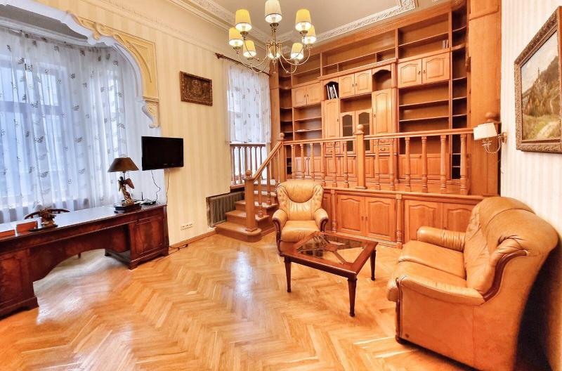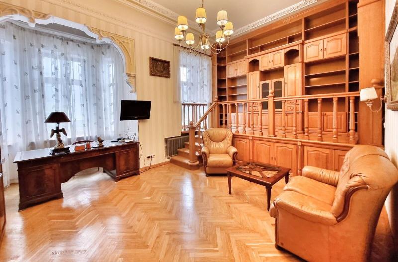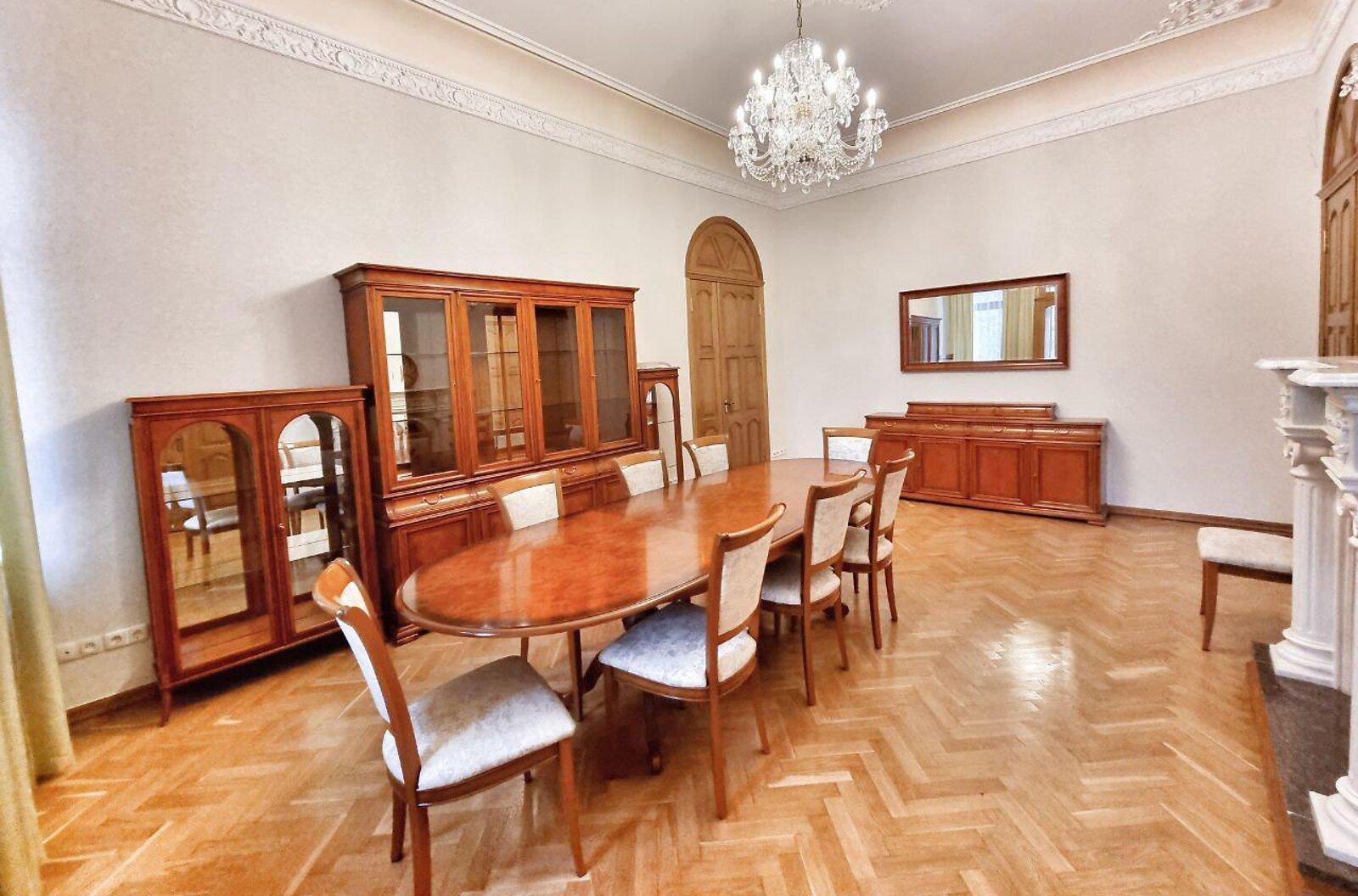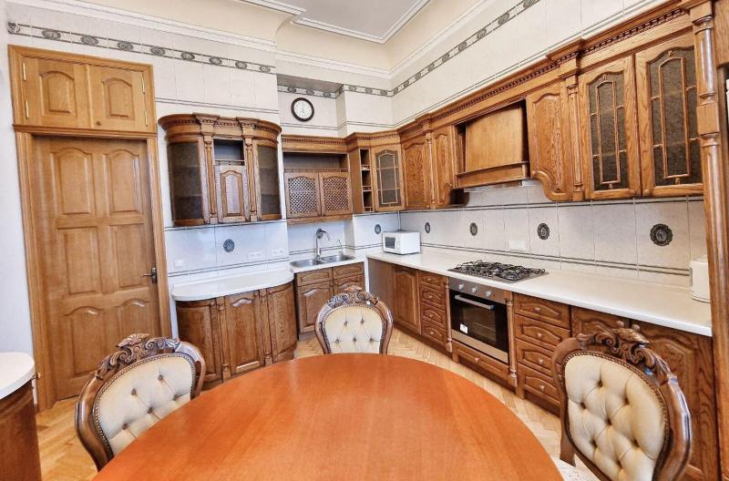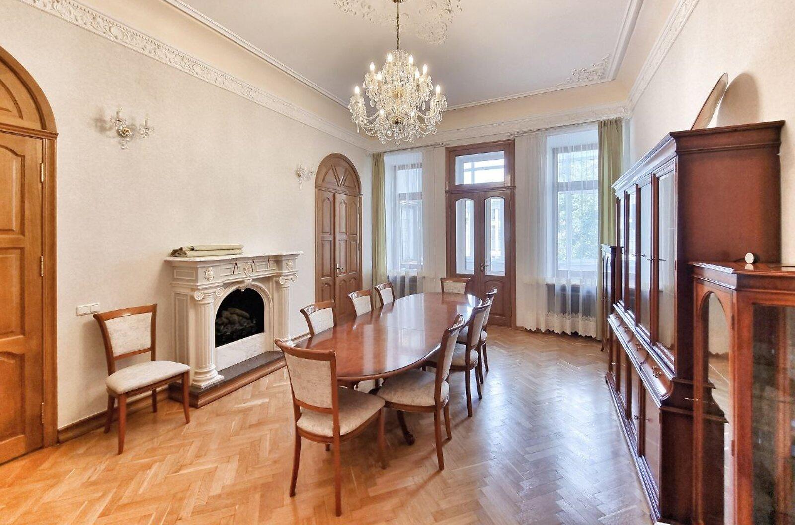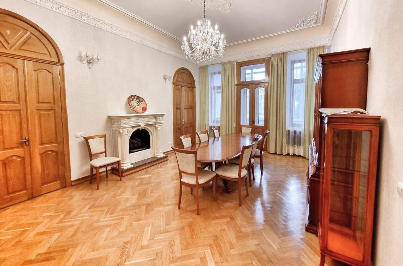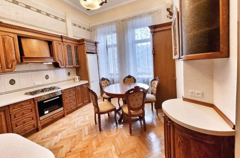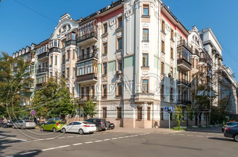 Пропонується просторна 4-комнатна квартира площею 165 м2 на вулиці Інститутській, 13/4, в історичному районі Києва. Квартира на 2-му поверсі є архітектурною пам'яткою, характеризується класичним ремонтом. Вона має окрему кухню, столову, вітальню, кабінет та дві спальні, а також два санвузли. Оснащена сучасними меблями, вбудованою кухнею з технікою, кондиціонерами і двома просторими балконами. Вікна виходять у тихий двір та на вулицю. Закритий двір з місцем для парковки. Усього у 2 хвилинах від Мариїнського парку та 5 хвилинах до метро.