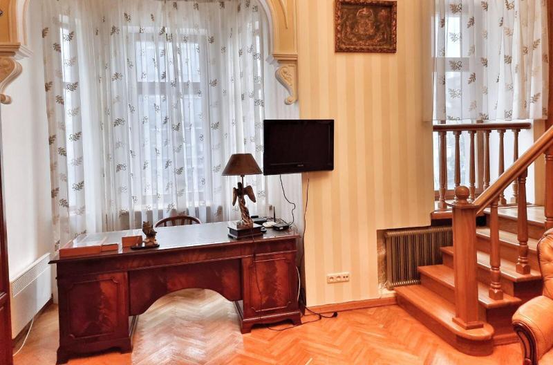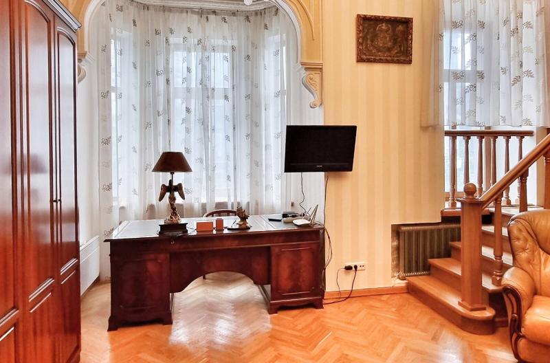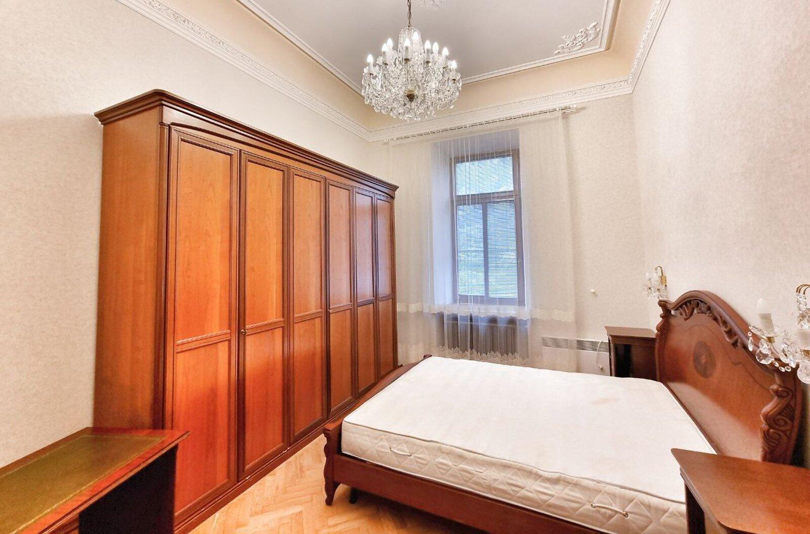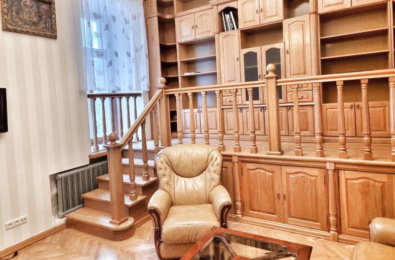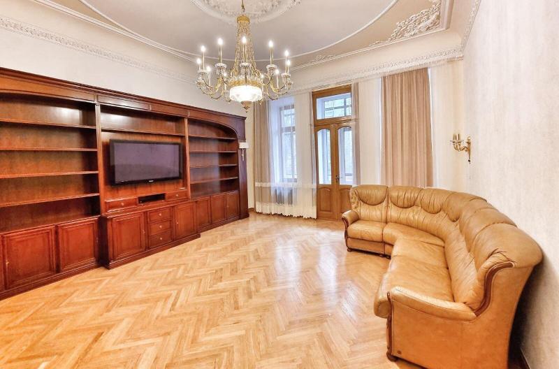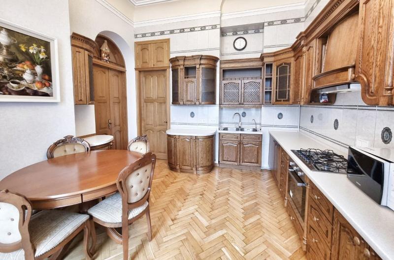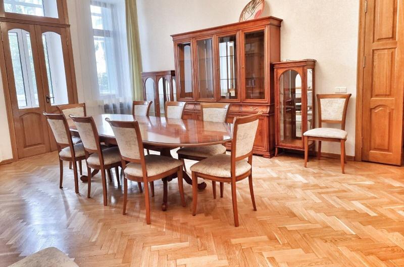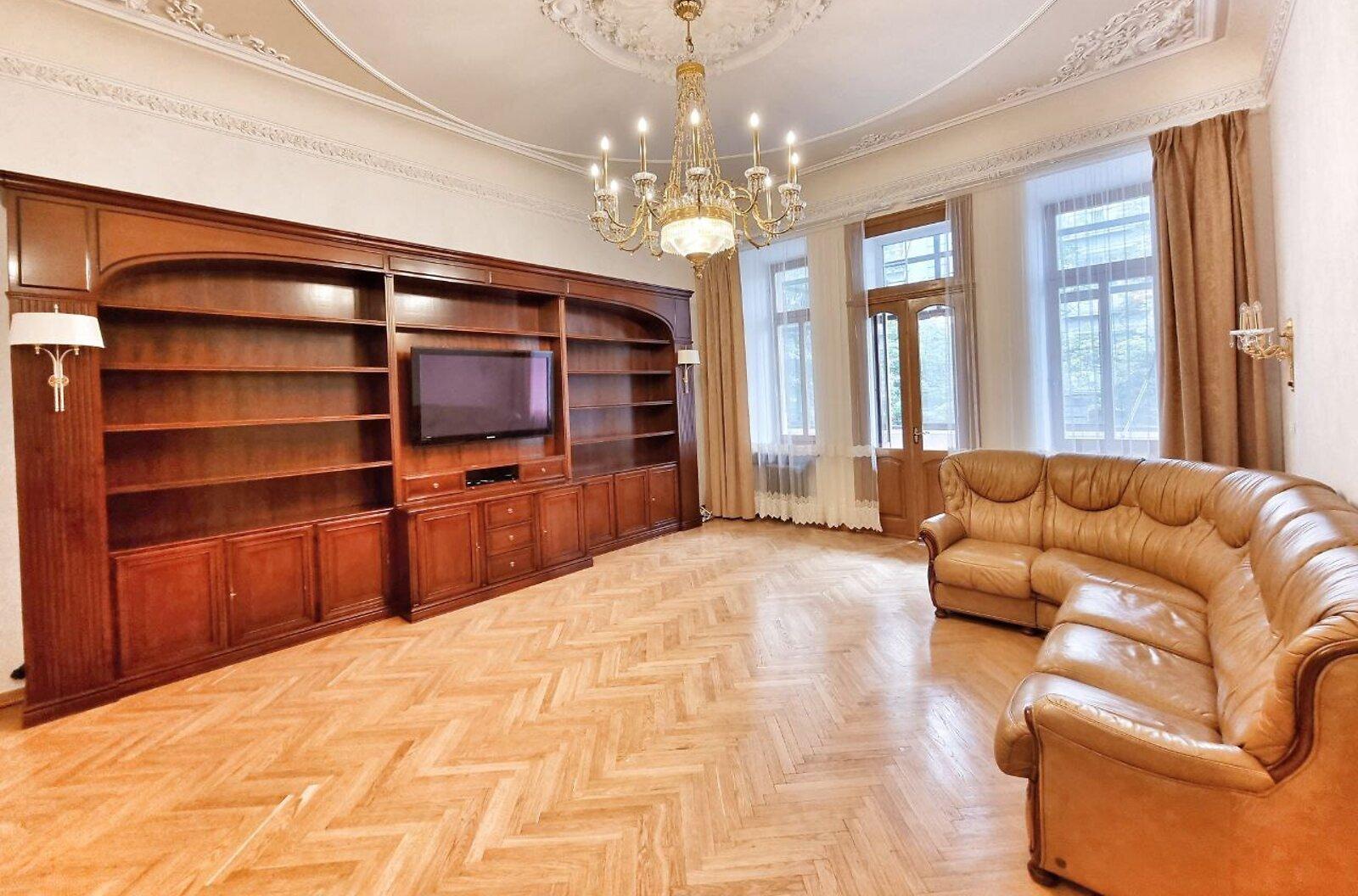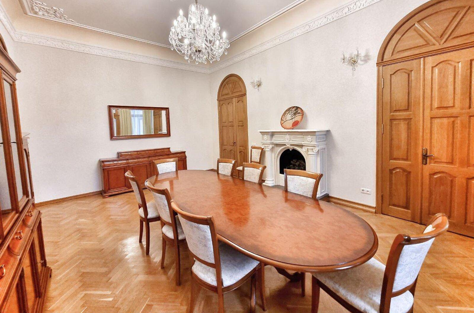 Пропонується просторна 4-комнатна квартира площею 165 м2 на вулиці Інститутській, 13/4, в історичному районі Києва. Квартира на 2-му поверсі є архітектурною пам'яткою, характеризується класичним ремонтом. Вона має окрему кухню, столову, вітальню, кабінет та дві спальні, а також два санвузли. Оснащена сучасними меблями, вбудованою кухнею з технікою, кондиціонерами і двома просторими балконами. Вікна виходять у тихий двір та на вулицю. Закритий двір з місцем для парковки. Усього у 2 хвилинах від Мариїнського парку та 5 хвилинах до метро.