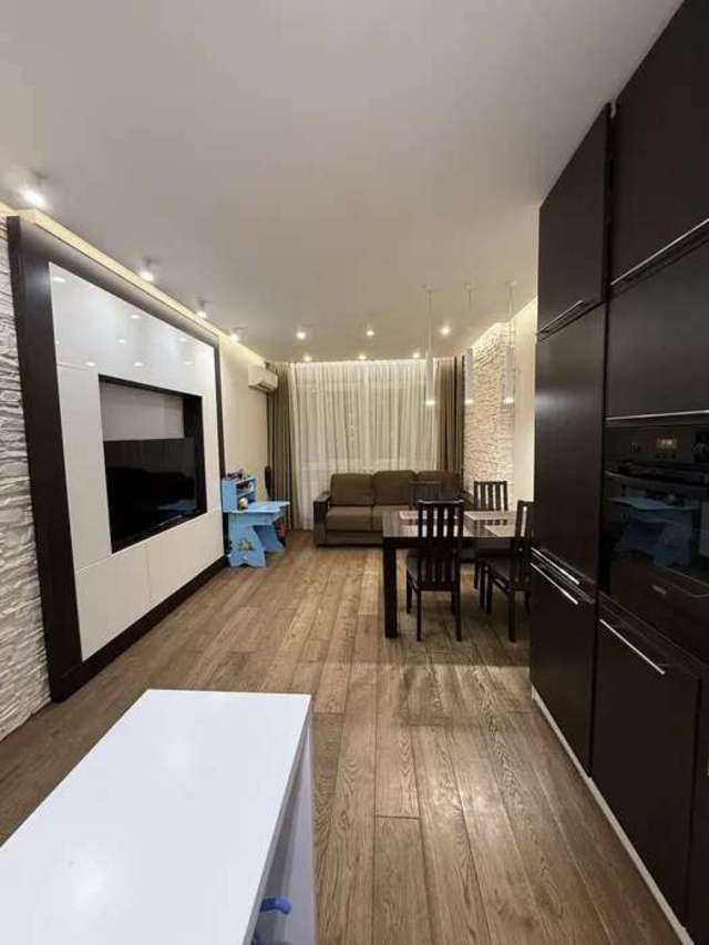 Пропонується світла та простора 2-кімнатна квартира в ЖК «Міністерський» на вулиці Юрія Кондратюка, 5. Оснащена сучасним дизайнерським ремонтом, меблями та технікою. В квартирі є автономне електропостачання. Комплекс має закриту територію з великим дитячим майданчиком, підземним паркінгом та магазинами. В будинку - генератор на ліфти та водопостачання, а також укриття в підвалі. Неподалік розташовані ліцей, лікарня та зручна транспортна розв'язка.