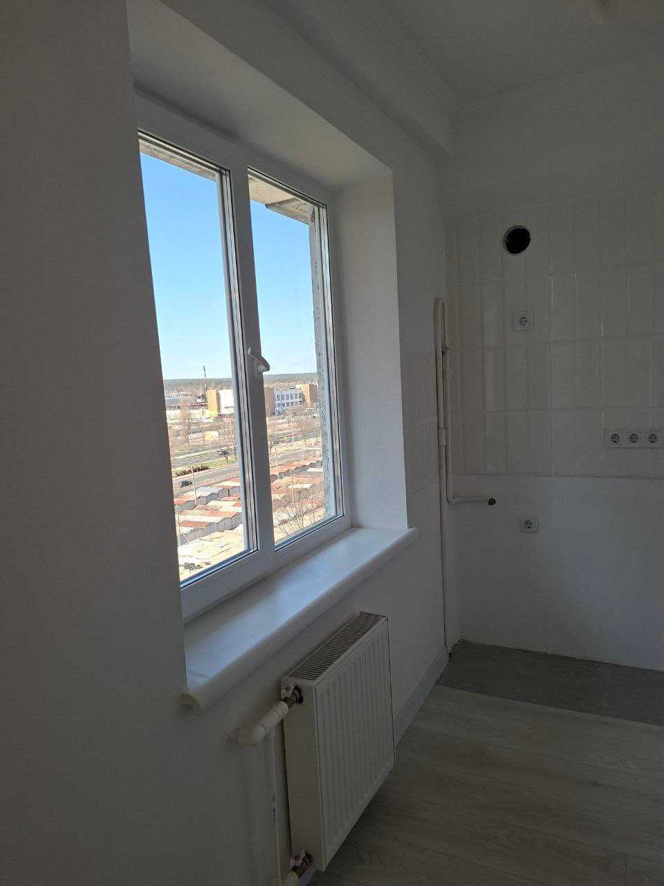 Пропонується однокімнатна квартира в Києві, на вулиці Богатирській 8, площею 21 м². Розташована на 9-му/9-му поверсі, квартира має новий ремонт, великий балкон, нові вікна та батареї, а також замінені труби і лічильники води. Опалення центральне, є газ. Будинок 1977 року, два під'їзди з домофонами, технічний стан задовільний. Розвинена інфраструктура: неподалік знаходяться школа, дитячий садок, магазини, полікліника та зупинка транспорту. Станція метро Героїв Дніпра розташована у 950 метрах.