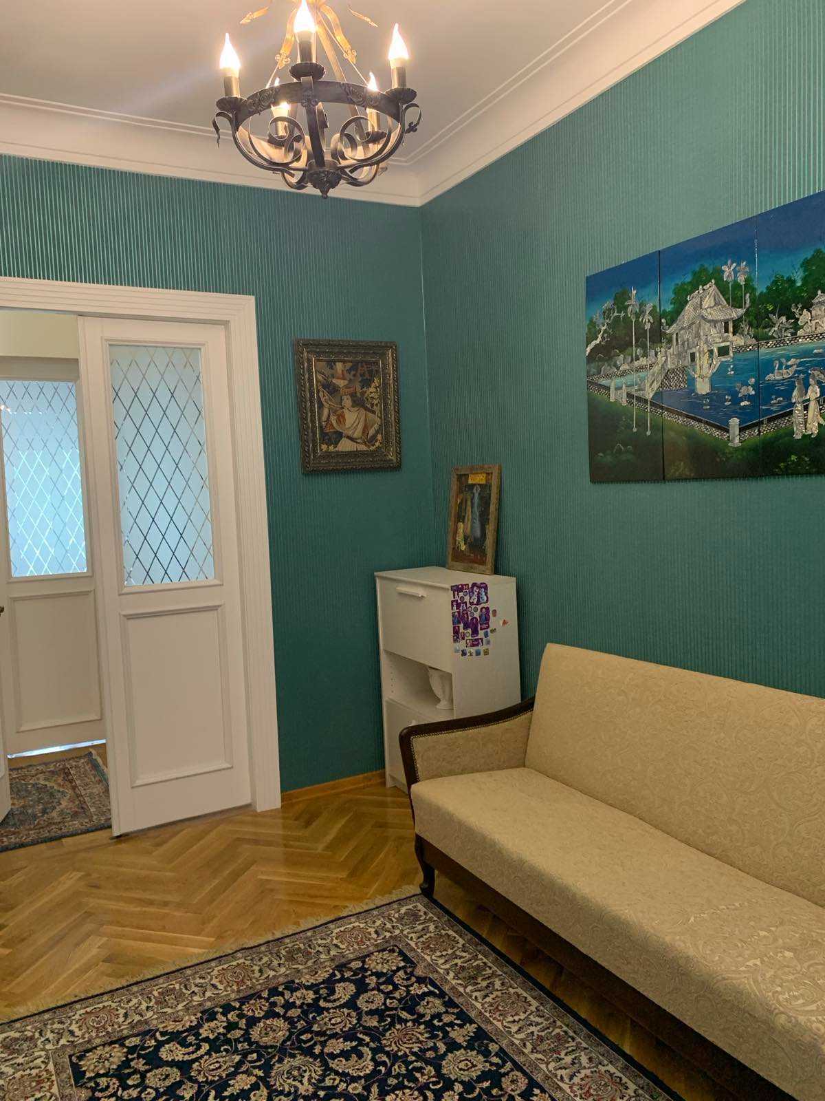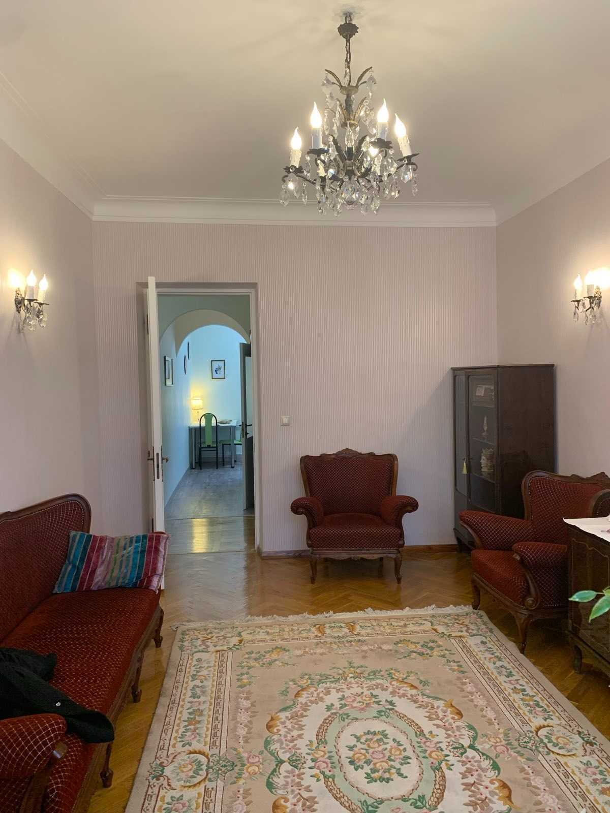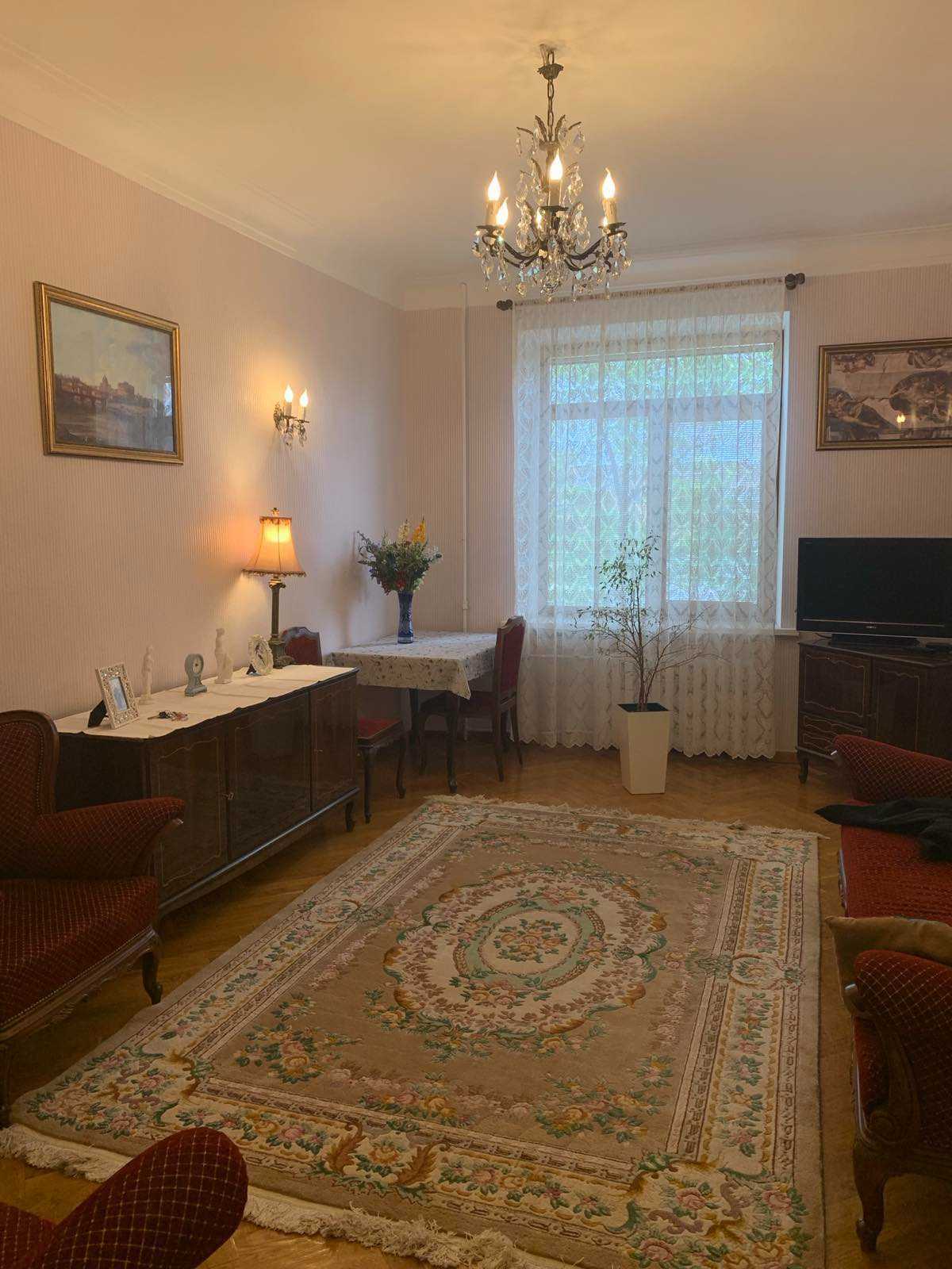 Трикімнатна квартира розташована в Печерських Липках на вулиці Шовковичній, у центрі Києва. Має роздільне планування та залізобетонні перекриття. Виконано ремонт із заміною комунікацій. Будинок обладнаний ліфтом.