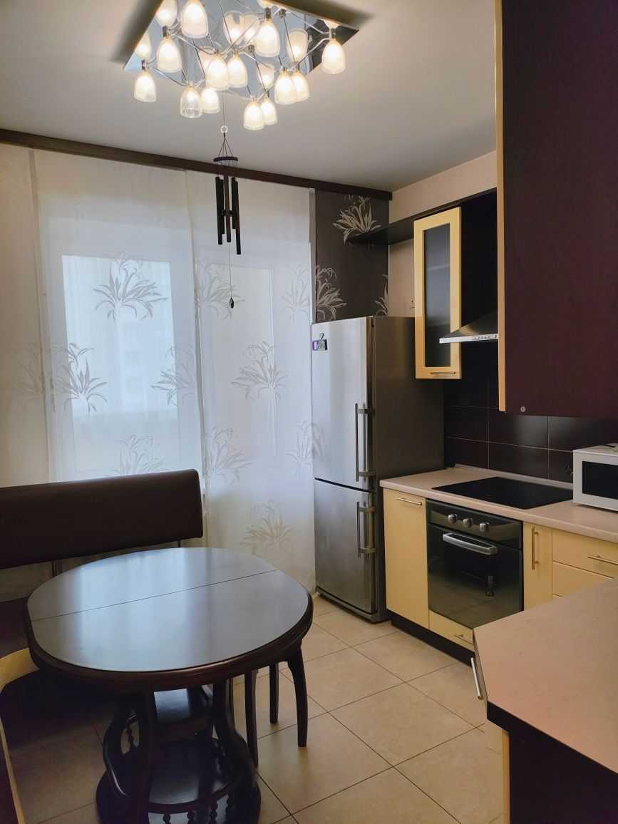 Пропонується квартира на вулиці Анни Ахматової, 35а в Дарницькому районі Києва. Простора та затишна однокімнатна квартира з сучасним ремонтом. Кімната площею 21 кв.м. має світлі вікна з видом на двір та еркер. Квартира облаштована меблями, вбудованою кухнею з побутовою технікою. Є засклений балкон та багато місця для зберігання. Розвинена інфраструктура: магазини, супермаркети, школи, дитячі садочки, транспортні зупинки, ринок і зони відпочинку неподалік. Метрo "Позняки" знаходиться за 15 хв. пішки.