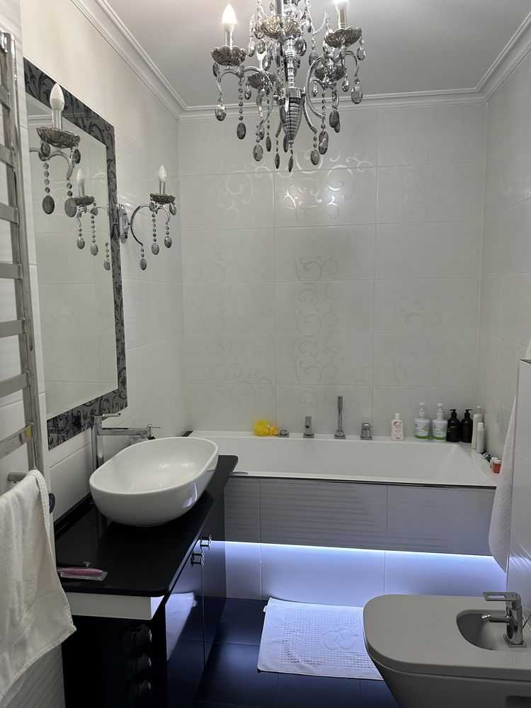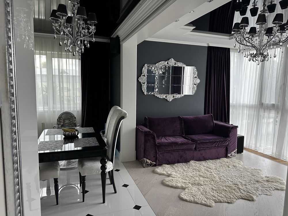 Пропонується квартира у ЖК «Кришталеві Джерела» в Феофанії, Київ. Розташована на 2-му поверсі, загальна площа складає 90 кв.м. Просторий дизайн включає кухню-вітальню, дитячу, спальню, гардеробну та два санвузли. Інтер'єр виконаний у стилі Art Deco, з встановленою теплою підлогою та преміальною технікою і меблями. Поблизу розташовані парк Феофанія, супермаркети, кафе, пошта, школа та дитячий садок.