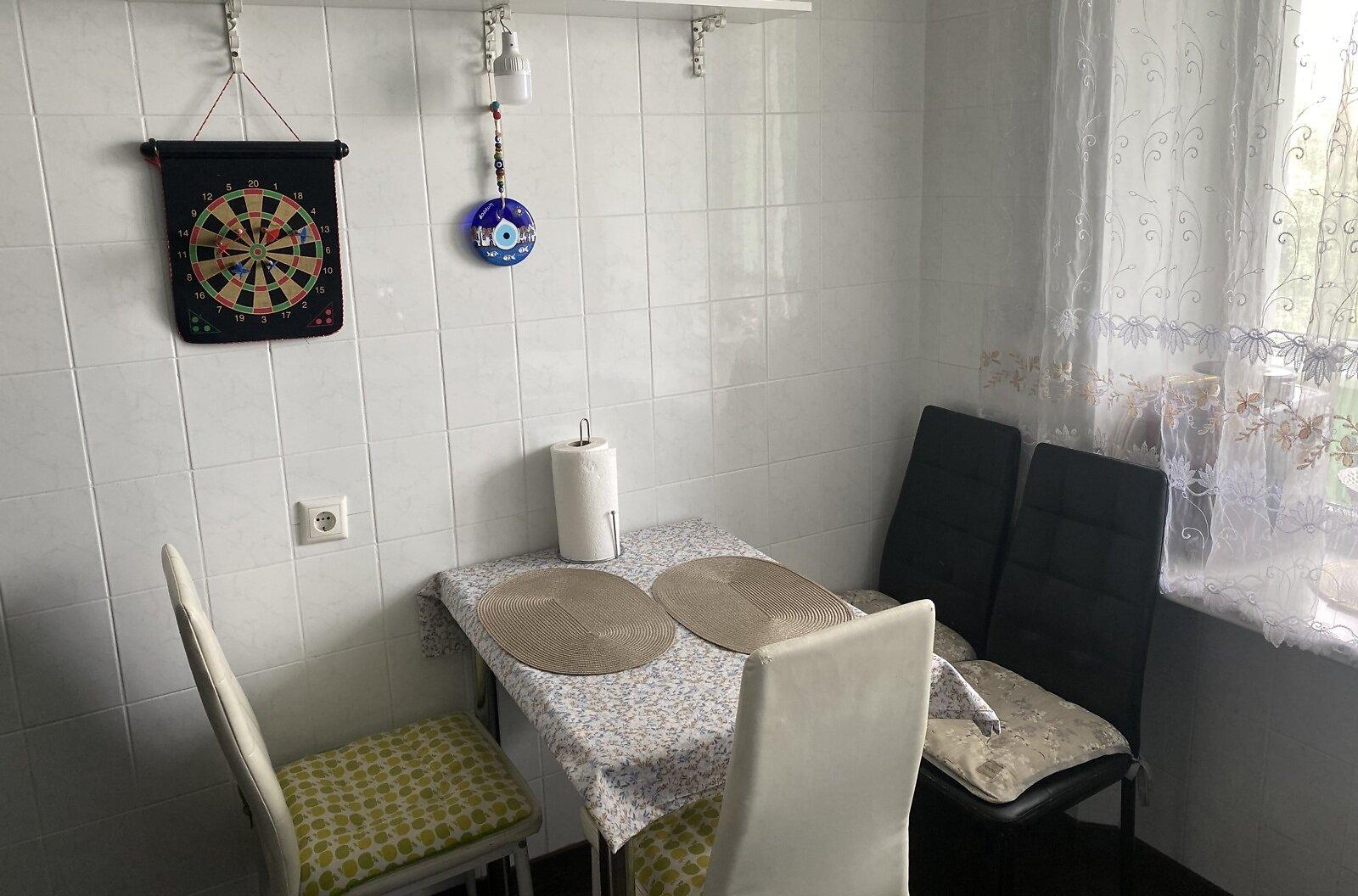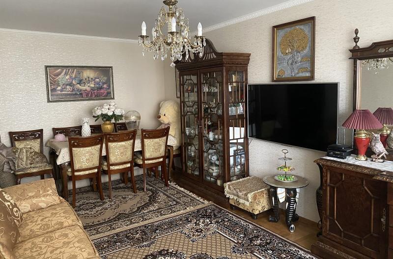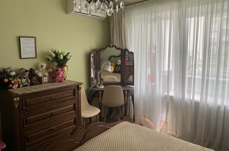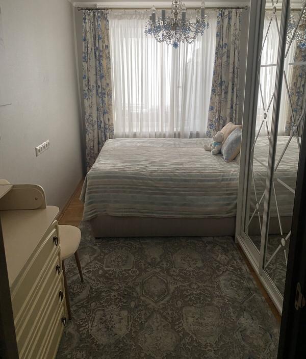 Квартира знаходиться у Києві на проспекті Валерія Лобановського, 39А. Вона розташована не в куті, що надає додаткову теплоізоляцію та забезпечує сонячне освітлення. Всі кімнати ізольовані, наявні дві великі засклені лоджії. У безпосередній близькості знаходяться відділення Ощад банку, дитячий садок, зупинка транспорту, а також різноманітні магазини та аптеки. За будинком розташовані дитячий майданчик та боксерський клуб Чемпіон. Доступні також СТО, заправки, супермаркети Новус та АТБ.