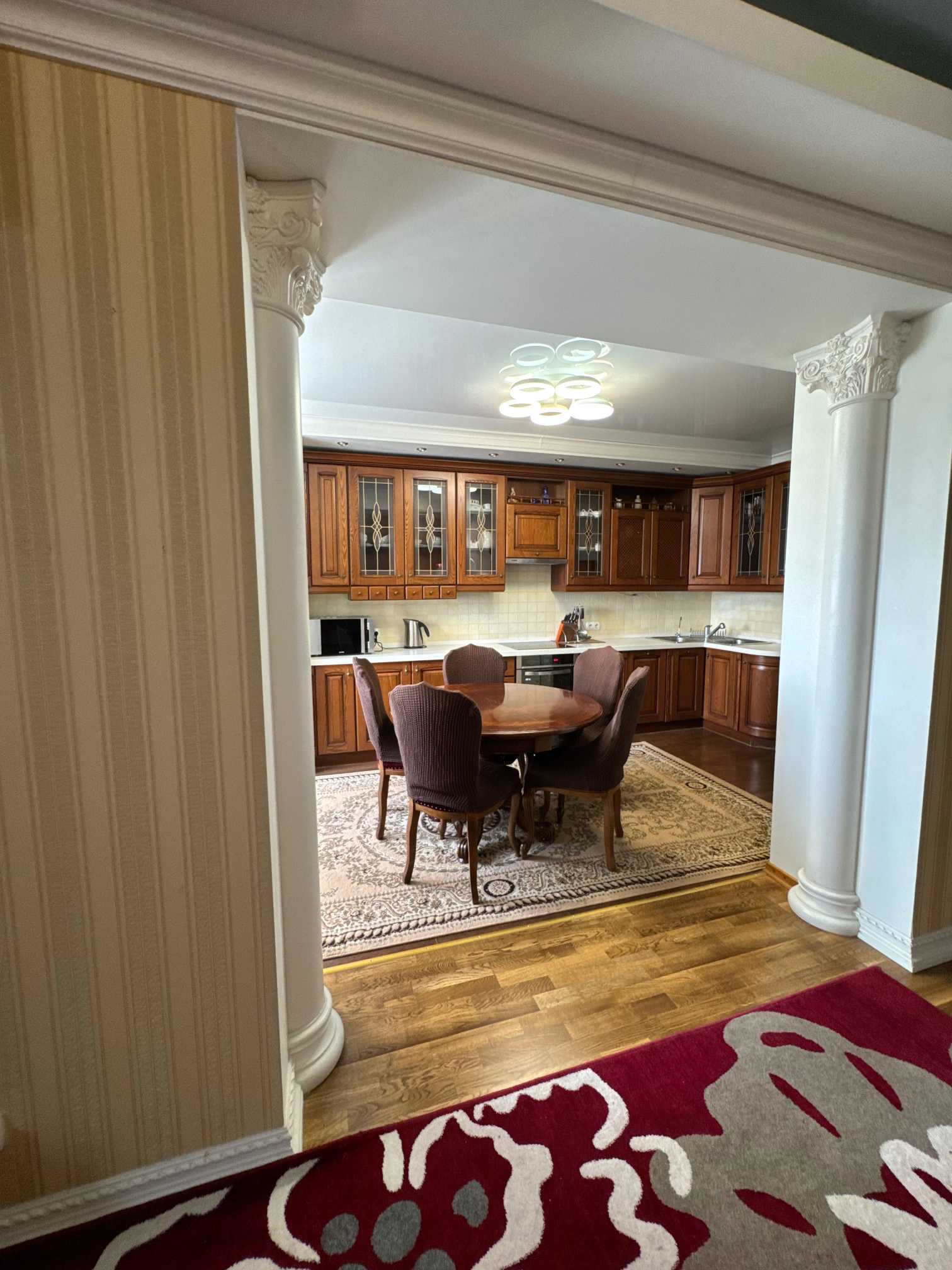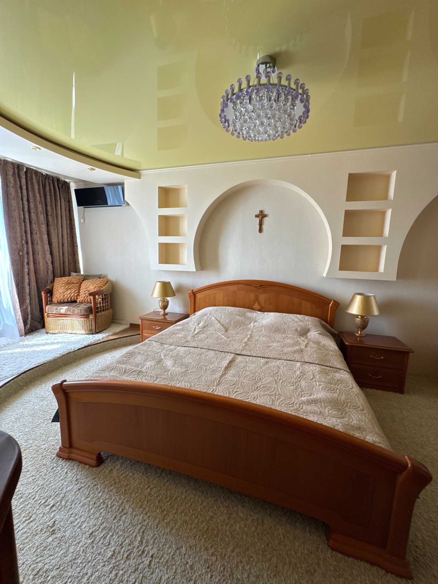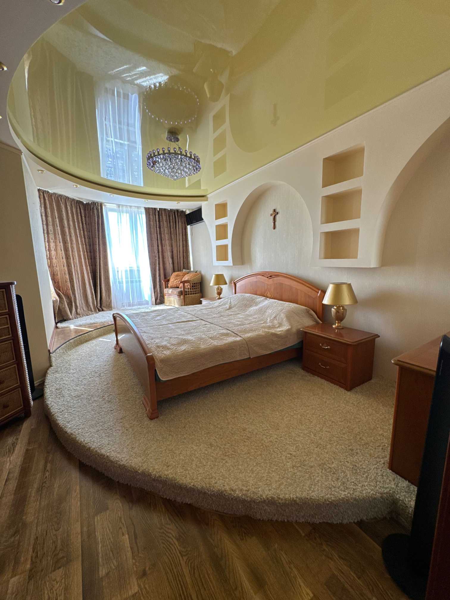 Пропонується в оренду 4-кімнатна квартира в ЖК "Корона" на вул. Княжий Затон 21. Загальна площа становить 131,5 кв. метрів, квартира розташована на 26 поверсі та обладнана сучасною технікою. У комплексі є підземний паркінг, охорона, відеоспостереження, дитячі та спортивні майданчики. ЖК бізнес-класу побудовано у 2007 році та має зручну інфраструктуру: поруч супермаркети, кафе, школи, дитячі садки, фітнес-клуби, а також станції метро Осокорки та Позняки.