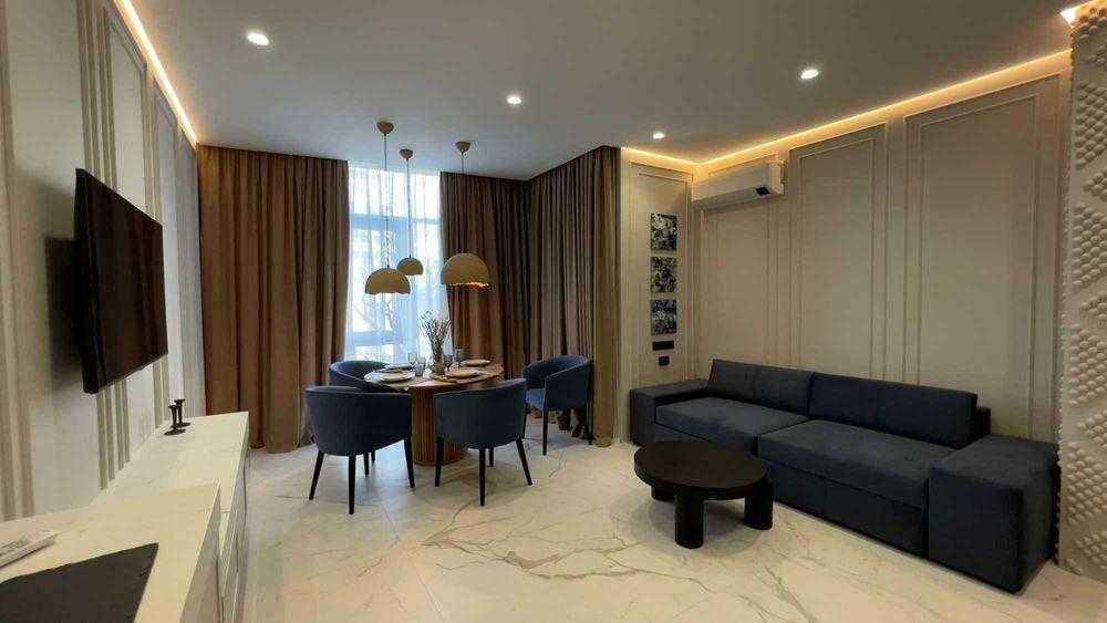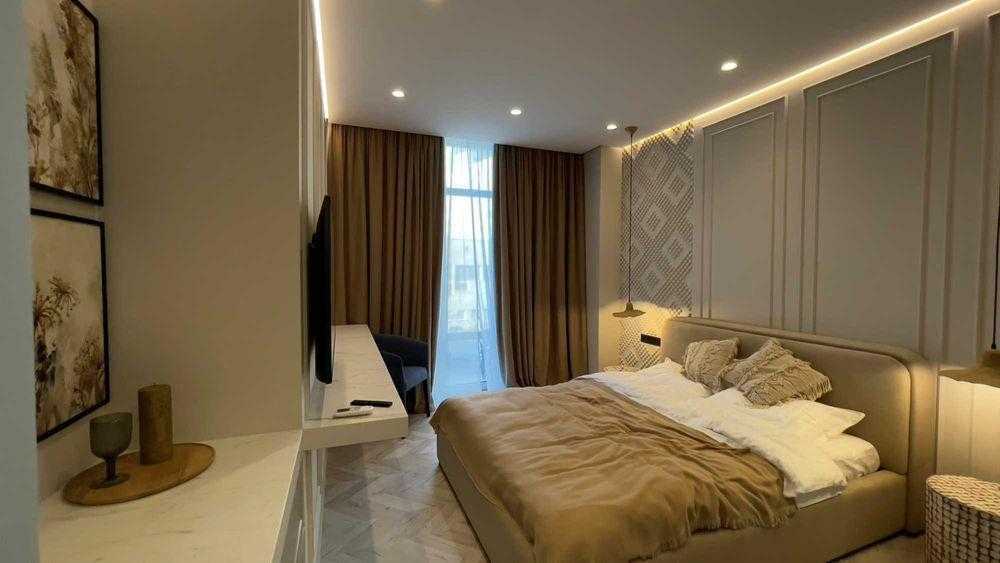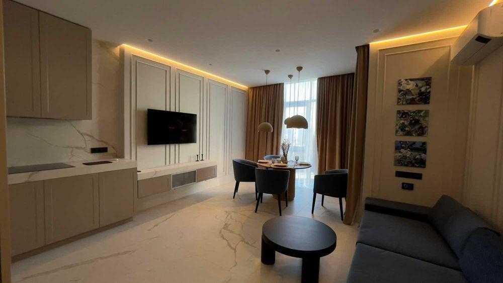 Пропонується в оренду двокімнатна квартира в ЖК "Бульвар Фонтанів". Квартира має кухню-студію, спальню, передпокій та два санвузли. Оснащена системою очищення води, електронним управлінням опалення, інверторними кондиціонерами та підігрівом підлоги. В наявності сучасна техніка: телевізор, прально-сушильна машина, холодильник, посудомийна машина. Для комфортного проживання підготовлені постільна білизна, рушники, посуд та столові прилади. Проведений інтернет. Вартість оренди включає послуги клінінгу два рази на місяць.