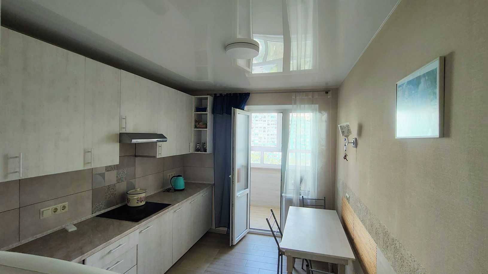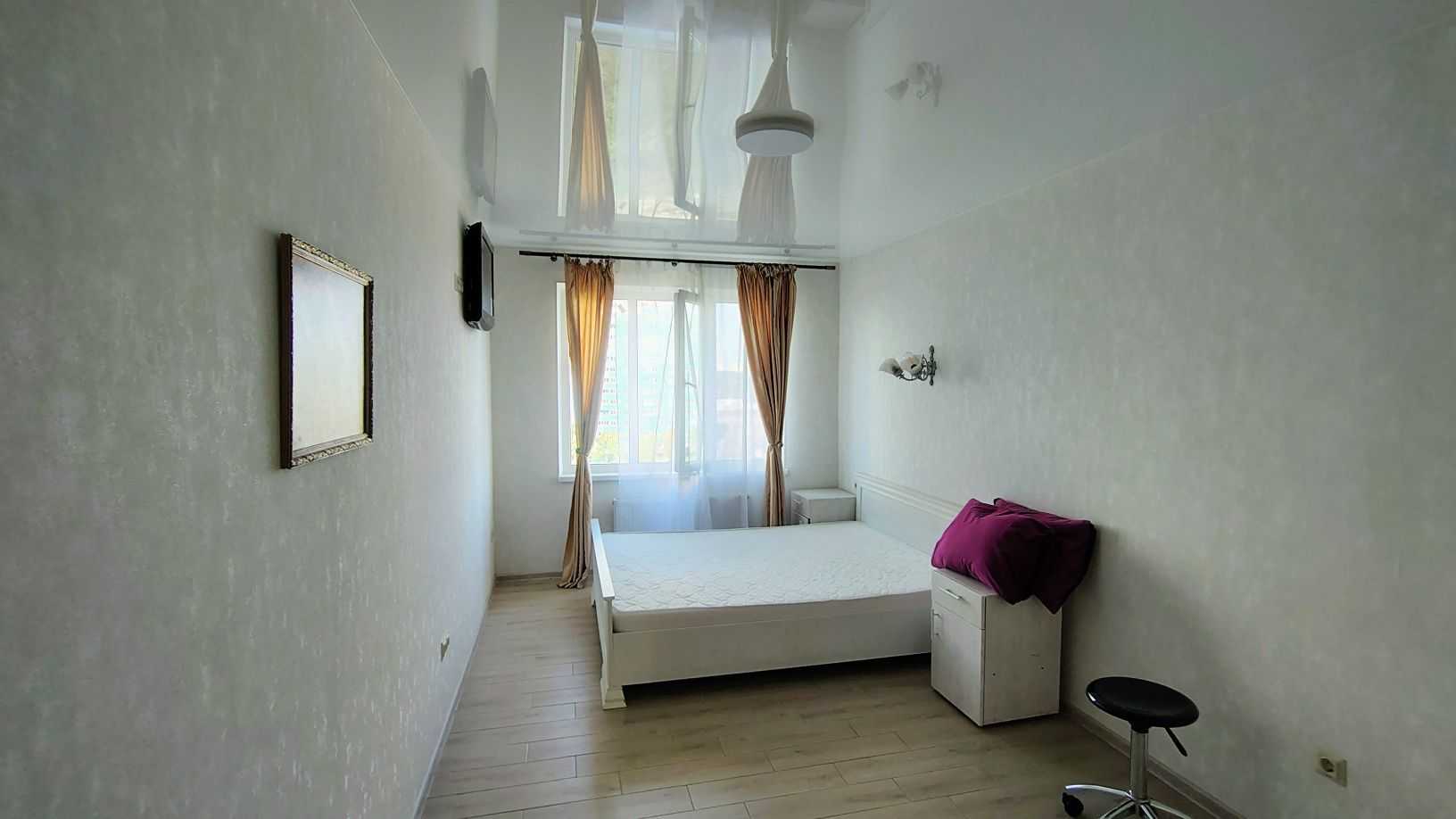 Однокімнатна квартира на Одеському бульварі, з трьома вікнами, розташована на 9-му поверсі нового житлового комплексу. В квартирі свіжий ремонт, окрема кімната і кухня, велика кількість місця для зберігання завдяки вбудованим шафам-купе. Є холодильник, базовий посуд, ліжко. Квартира світла та затишна. На території ЖК є консьєрж і домофон. Поблизу розташовані великий торговий центр, супермаркет та транспортні зупинки. Ліс і озеро в 15 хвилинах пішки.
