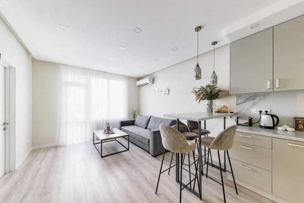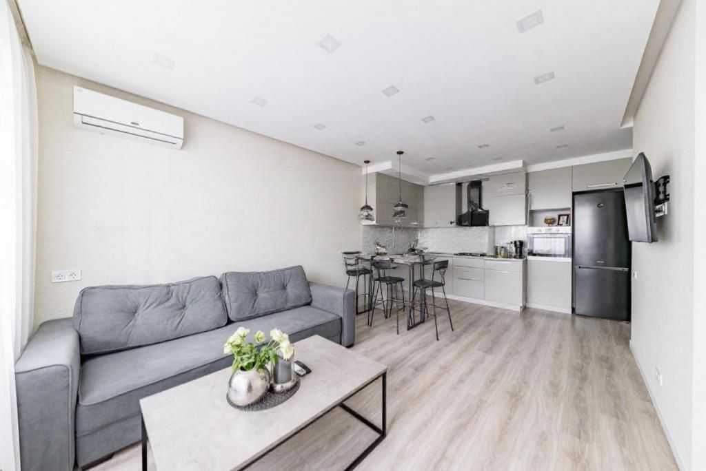 Пропонується 2-кімнатна квартира в бізнес-класі ЖК Victory V за адресою: Берестейський проспект, 5В, Шевченківський район. Площа складає 51 м², квартира розташована на 23-му поверсі з 34. Включає простору кухню-вітальню з обідньою зоною та заскленим балконом, світлу спальню з великим ліжком і шафою-купе. Ванна кімната суміжна. Квартира повністю мебльована та обладнана сучасною побутовою технікою. ЖК пропонує трирівневий паркінг, цілодобову охорону та закритий дитячий майданчик. Зручна локація біля станцій метро Вокзальна, КПІ, з розвиненою інфраструктурою.