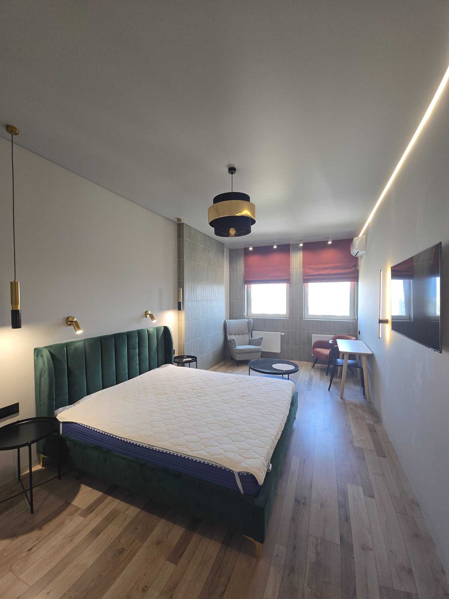 Пропонується 1-кімнатна квартира в ЖК Manhattan з сучасним ремонтом. У квартирі виконано якісне оздоблення та встановлені меблі. Присутня вбудована побутова техніка Bosch, а також тепла підлога і простора гардеробна кімната. З вікон відкривається вид на центр міста, а швидкісний інтернет забезпечується оптоволокном. ЖК має розвинену інфраструктуру, у тому числі спортивну зону, дитячі майданчики та зону для відпочинку. Передбачено відеоспостереження, охорону та паркінг.