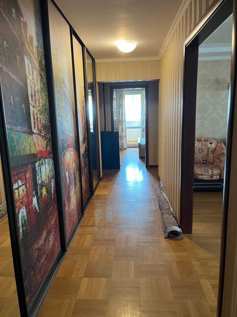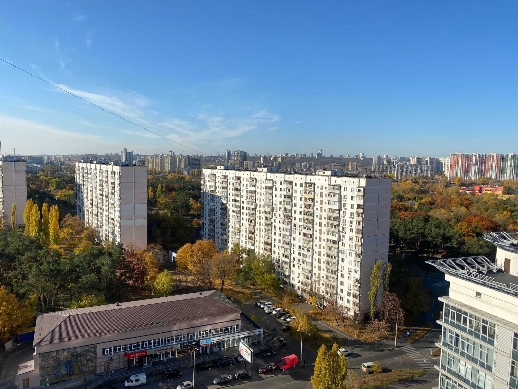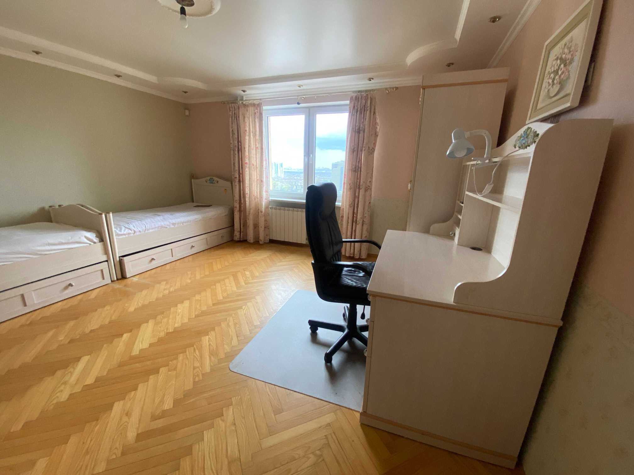 Простора 3-кімнатна квартира в сучасному монолітно-каркасному будинку 2007 року. Розташована на 18 поверсі з панорамними виглядами на місто та парк Перемога. Площа 100 м². Квартира включає велику вітальню з виходом на лоджію, дві окремі спальні, простору кухню і роздільний санвузол. Сучасний ремонт в світлих тонах, облаштована новими меблями та технікою, включаючи кімнати з кондиціонерами. У будинку консьєрж, відеонагляд, чистий під'їзд і підземний паркінг. Поруч супермаркети, дитячі зони, школи. До метро "Дарниця" 10 хвилин пішки.
