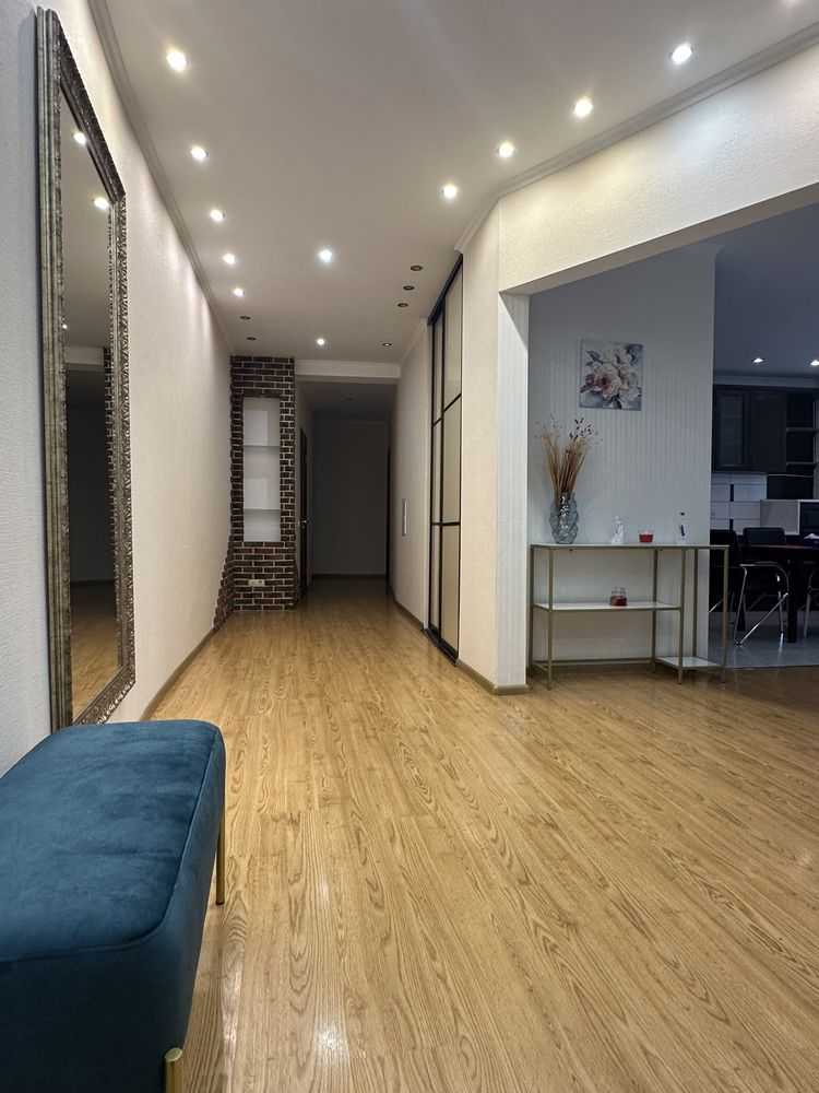 Пропонується 3-кімнатна квартира з ремонтом на Дніпровській набережній, площею 105м². Простора кухня-вітальня, окрема спальна кімната з чудовим краєвидом на Дніпро та яхт-клуб, окрема дитяча кімната. Оснащена всім необхідним: вбудована кухня, варильна панель, духова шафа, витяжка, посудомийна машина, пральна машина та кондиціонер. Є ванна кімната та гостьовий санвузол. Розвинута інфраструктура поряд: ТЦ «River mall», магазини, кафе та ресторани.