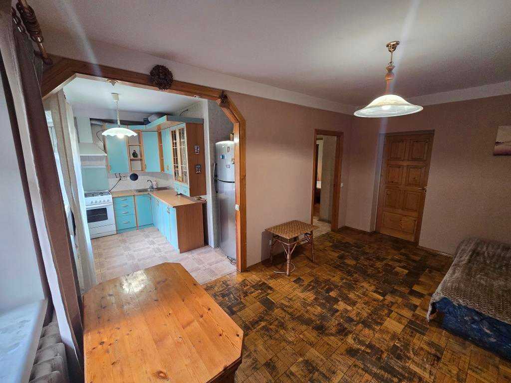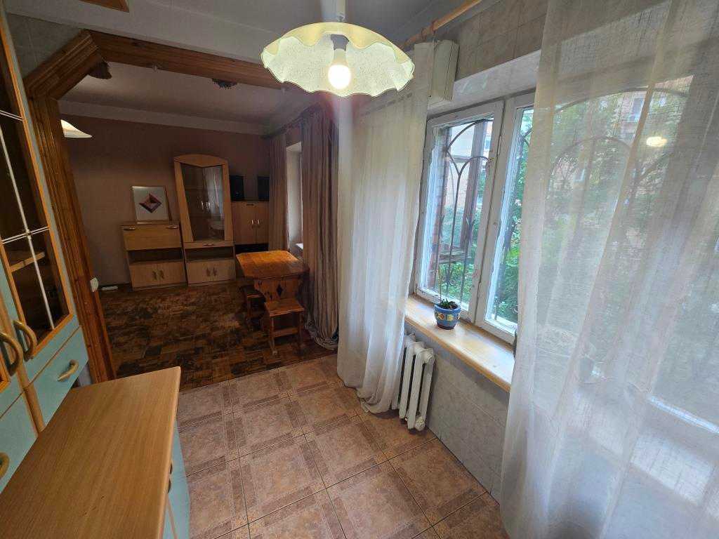 Квартира розташована на вулиці Сапёрне Поле в Печерському районі Києва, на другому поверсі п'ятиповерхового будинку. Простора кухня-студіо обладнана газовою плитою та бойлером. В околицях тихе та спокійне середовище з хорошими сусідами. У безпосередній близькості розташовані станції метро "Либідська" та "Палац України", а також продуктові магазини, банківські відділення, кафе та зони відпочинку.