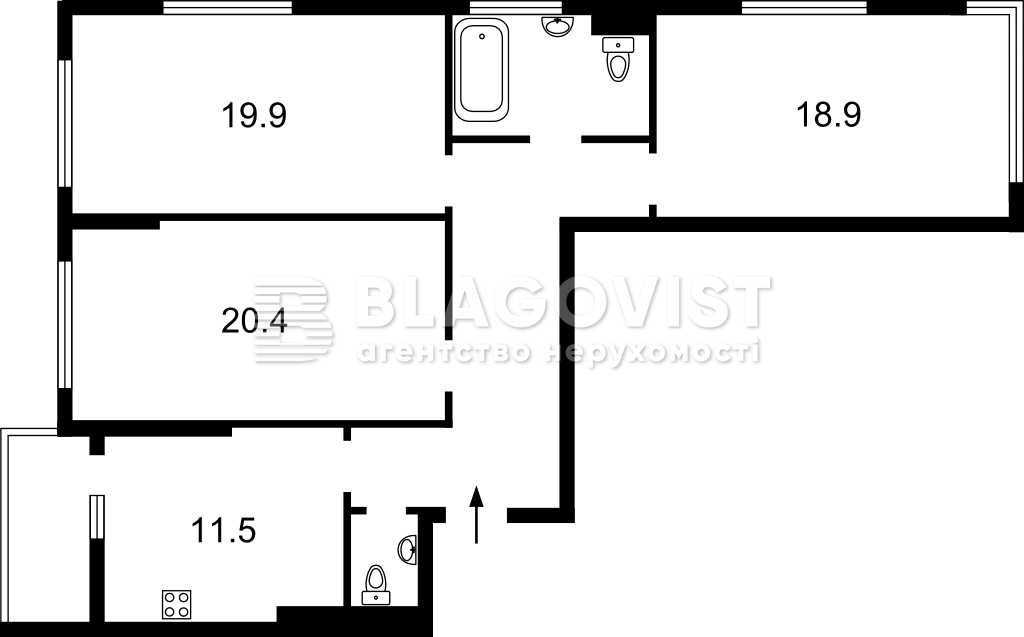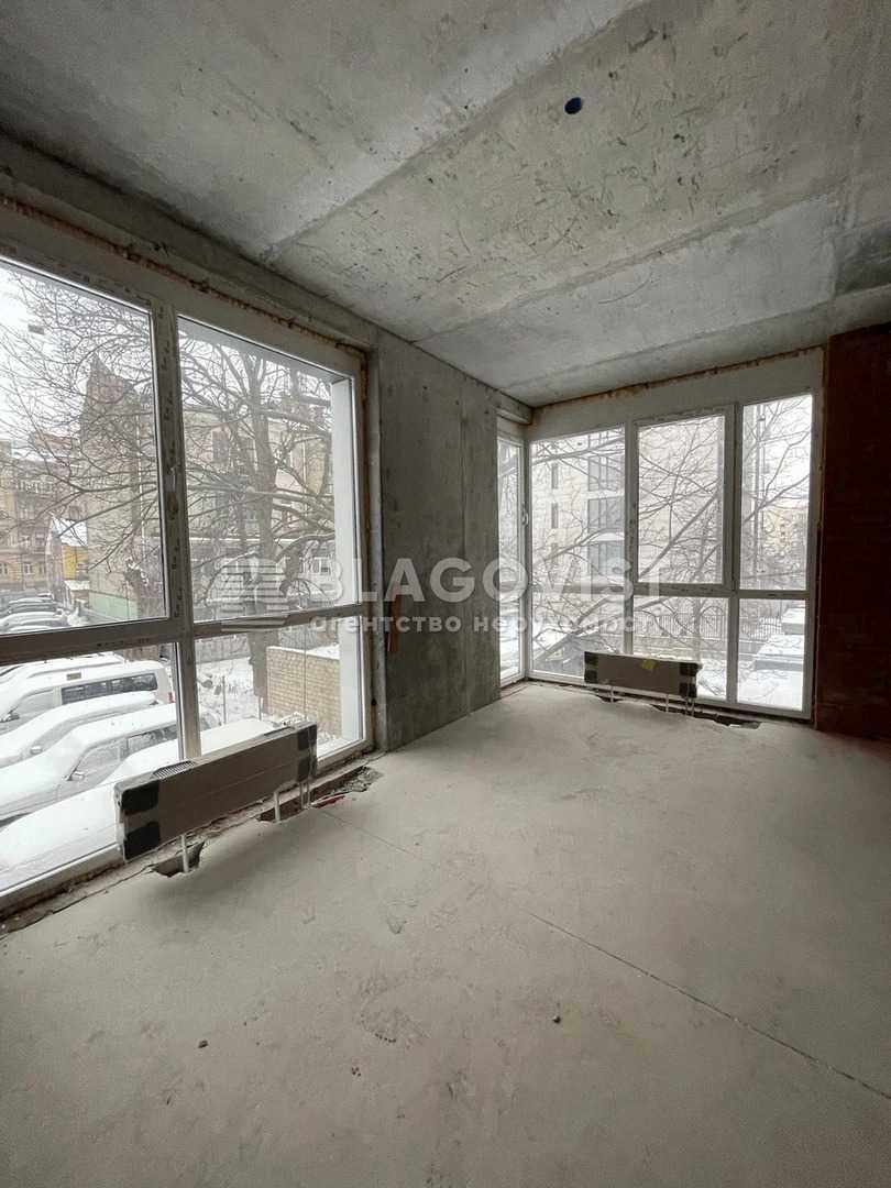 Трикімнатна квартира без ремонту розташована у житловому комплексі «Ярославів Град», що знаходиться в історичному центрі Києва. Квартира на 2-му поверсі та має площу 94 м², включає три окремі спальні з вбиральнями та санвузлом. Комплекс оснащений сучасними енергоефективними технологіями та пропонує затишний внутрішній двір з зонами відпочинку. Поряд з комплексом розвинута інфраструктура: торговий центр, театри та інші заклади. Закрита територія, доступна тільки для мешканців.