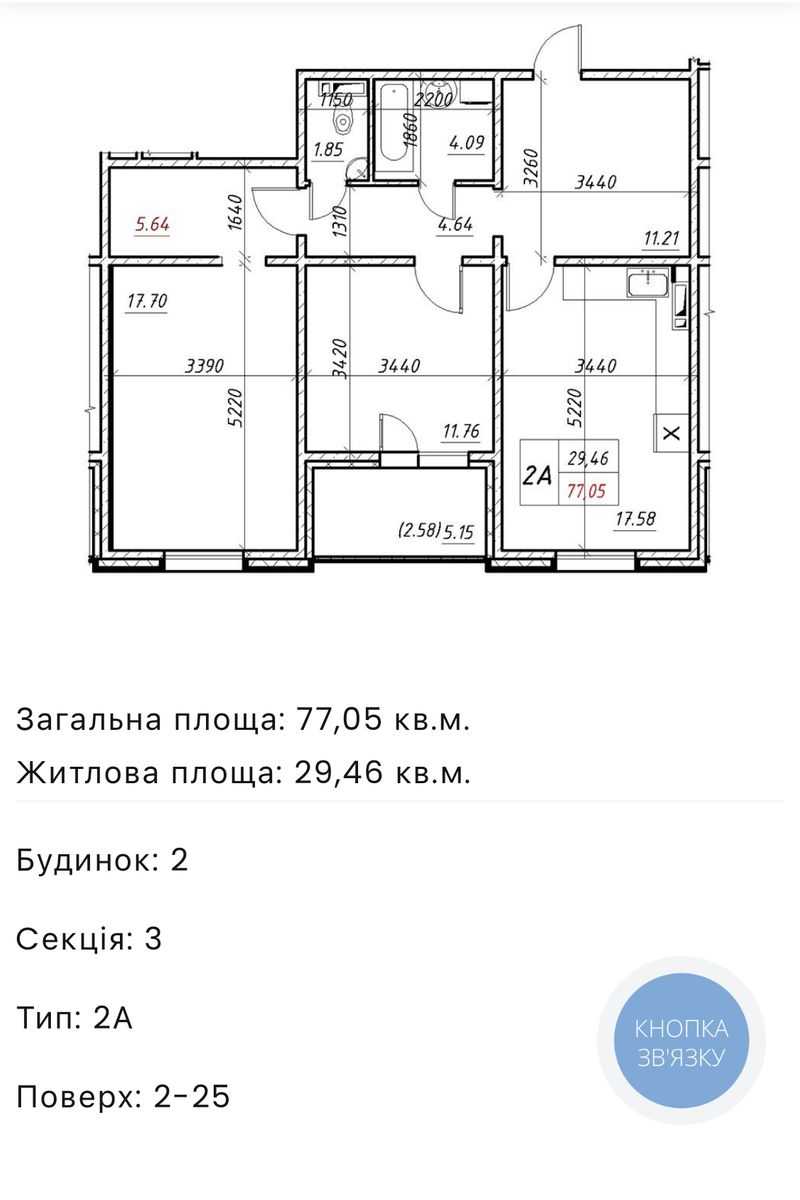 Квартира знаходиться на 18-му поверсі 25-поверхового термобудинку в ЖК Navigator 2 на Коноплянській вул., 22-Б. Пропонується після ремонту з роздільним плануванням кімнат. У наявності повністю оборудований санвузол та кухня з меблями та технікою, є засклена лоджія. Будинок введено в експлуатацію, з консьєржем та вже заселений.