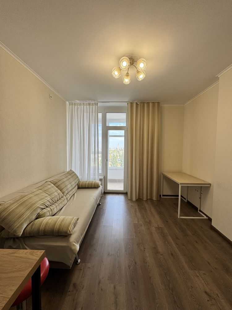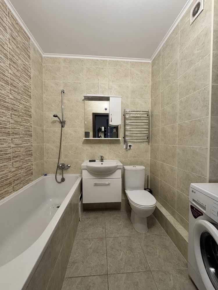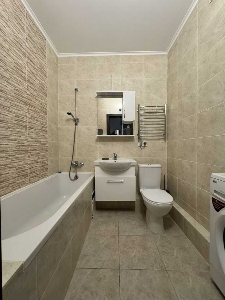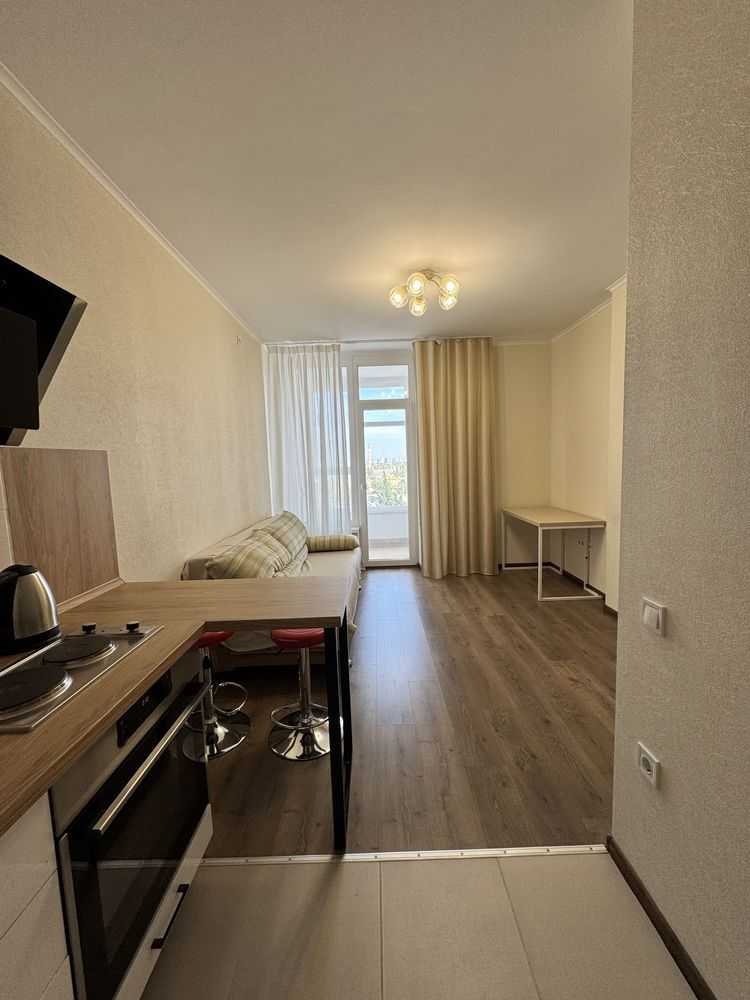 Пропонується в оренду 1-кімнатна квартира (євродвушка) в ЖК Академ-квартал, розташована на 17 поверсі 25-поверхового будинку. Загальна площа складає 47,7 м2. Квартира в ідеальному стані, з євроремонтом, меблюванням та технікою: газова плита, духова шафа, холодильник, пральна машина. Світла, просторна, з гарною шумоізоляцією. У будинку є власний генератор, закритий двір з дитячими майданчиками та паркінгом. Поруч ліс, парки і магазини.