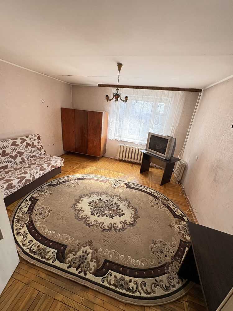 Пропонується в оренду велика однокімнатна квартира в районі Південної Борщагівки на проспекті Академіка Корольова. Загальна площа складає 40,7 кв.м, квартира розташована на 12-му поверху, обладнана новими ліфтами. Простора кухня площею 8,6 кв.м, кімната 17,3 кв.м та великий хол 8,5 кв.м. У квартирі є вся необхідна техніка, серед якої холодильник, електрична плита, духовка, пральна машина, бойлер та телевізор. Нещодавно встановлений новий диван. З балкону відкривається вид на озеро. Розвинена інфраструктура: поруч торговий центр, супермаркет, школа та дитячий садок.