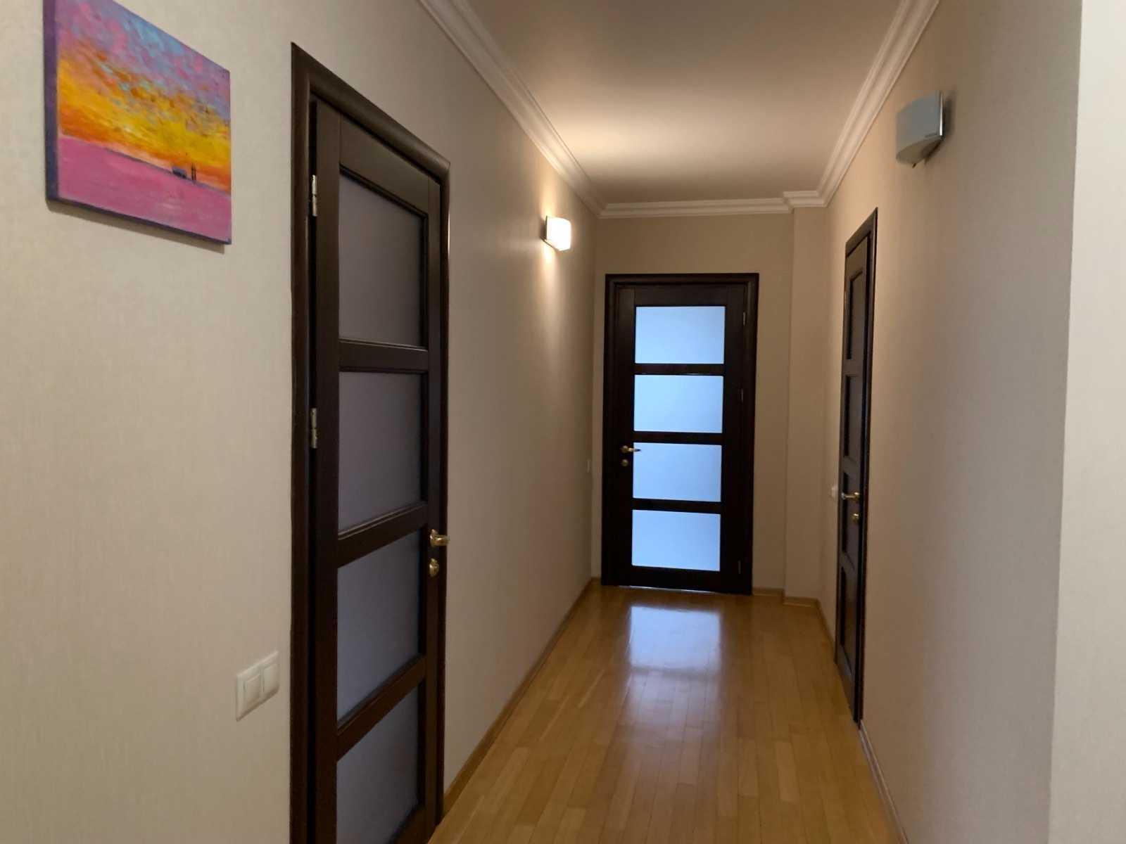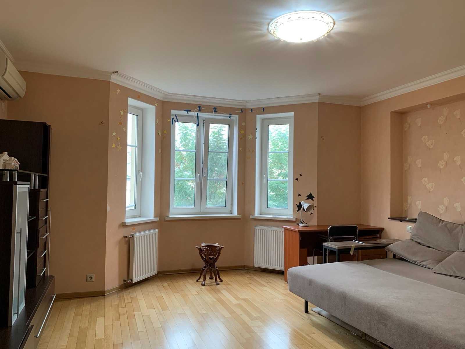 Пропонується двостороння квартира на Почайнинській, 25/49 в історичній частині Києва. Квартира розташована на 4-му поверсі десятиповерхового будинку, збудованого в 2006 році. Вона має три засклені балкони, дві спальні, кабінет, велику кухню та вітальню, два санвузли і комору. Використано натуральні матеріали під час ремонту. Вікна REHAU забезпечують тепло- та шумоізоляцію. Квартира обладнана системою сигналізації, є охорона 24/7 та консьєрж. Поруч знаходяться метро Контрактова площа, заклади освіти, магазини та кав'ярні.