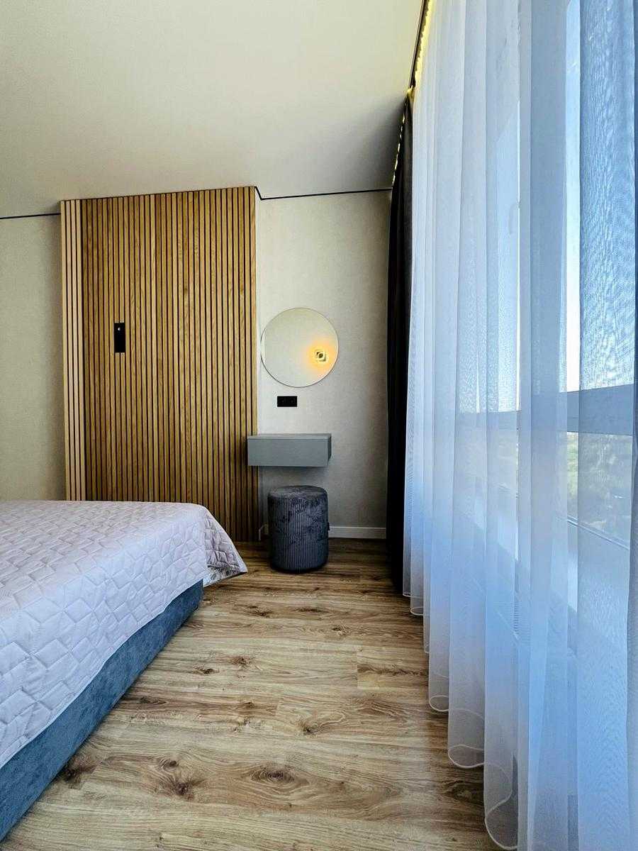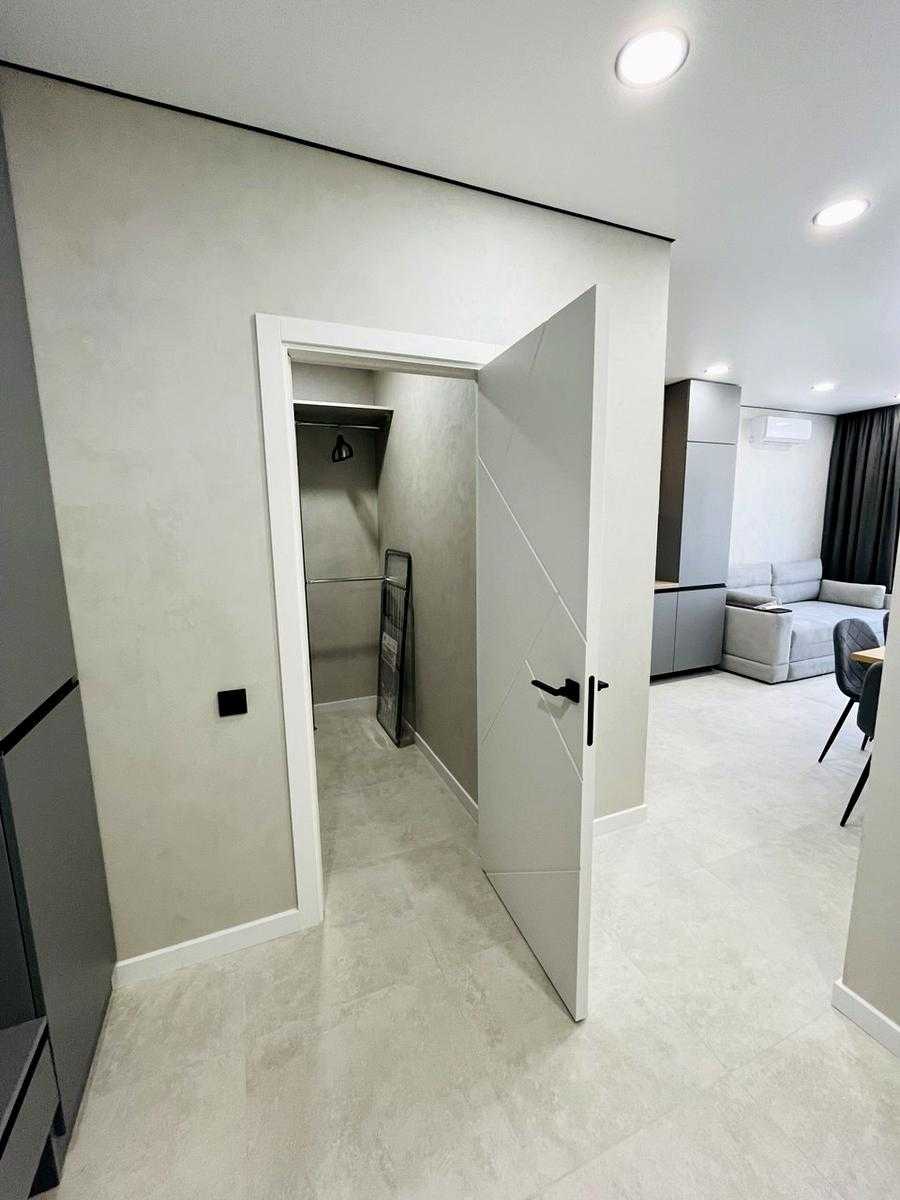Квартира в ЖК Варшавський-2, розташована на вул. Родини Крістерів, 14-Б, в Подільському районі Києва. Площа 45 м², 1 кімната, 7-й поверх з 25. Новий якісний ремонт з функціональним плануванням: кухня-вітальня, окрема спальня, гардеробна кімната, санвузол з душовою кабіною. Укомплектовано технікою провідних брендів, зокрема посудомийною машиною Electrolux, варильною поверхнею Electrolux, холодильником Whirlpool, духою шафою Bosch. Тепла підлога в місцях плитки, резервне живлення квартири. Перша здача.