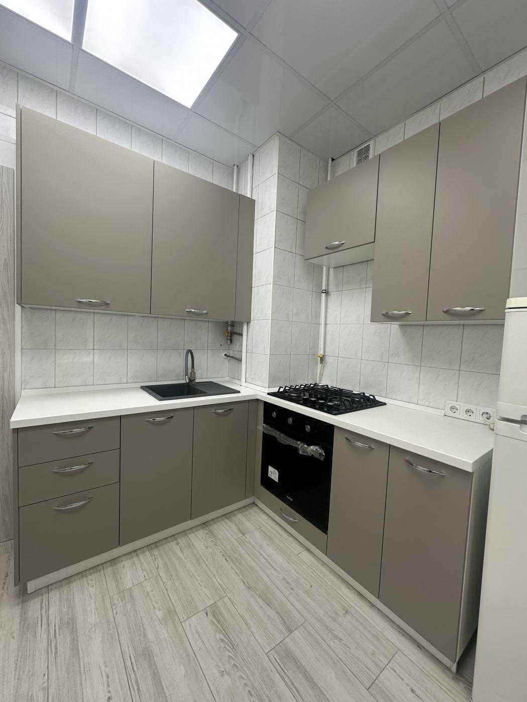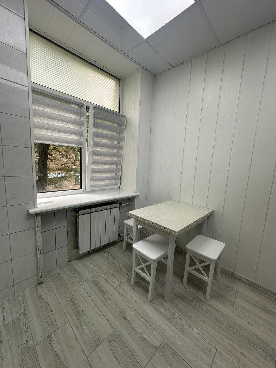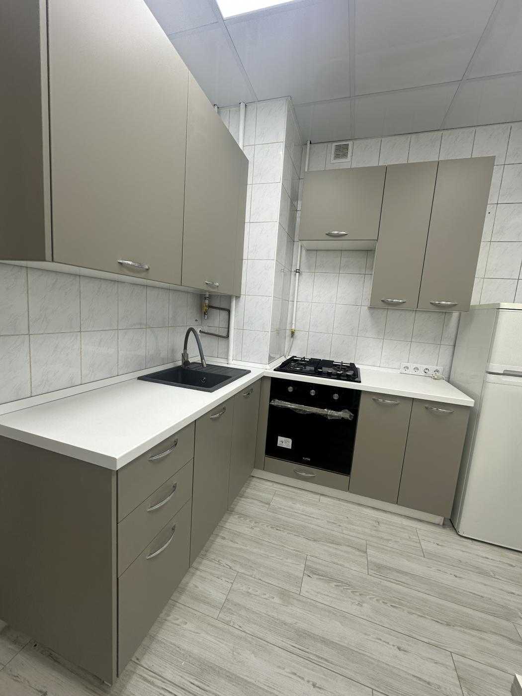 Світла 2-кімнатна квартира на вул. Табірна 40, всього за 5 хвилин від метро Берестейська. Загальна площа 48 м², з окремими кімнатами та суміжним санвузлом. Кухня площею 8 м² обладнана сучасною газовою плитою, витяжкою та духовкою. У квартирі є кондиціонер, пральна машина, холодильник та пилосос. Спальня має двоспальне ліжко та шафу для зберігання речей. Інфраструктура включає супермаркети, ресторани, школи та поліклініку в пішій доступності.