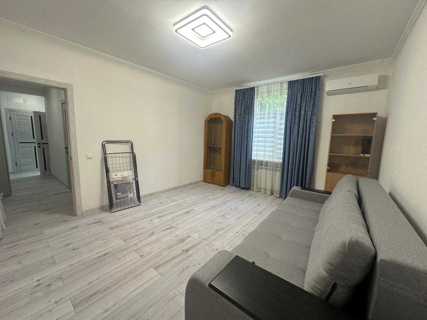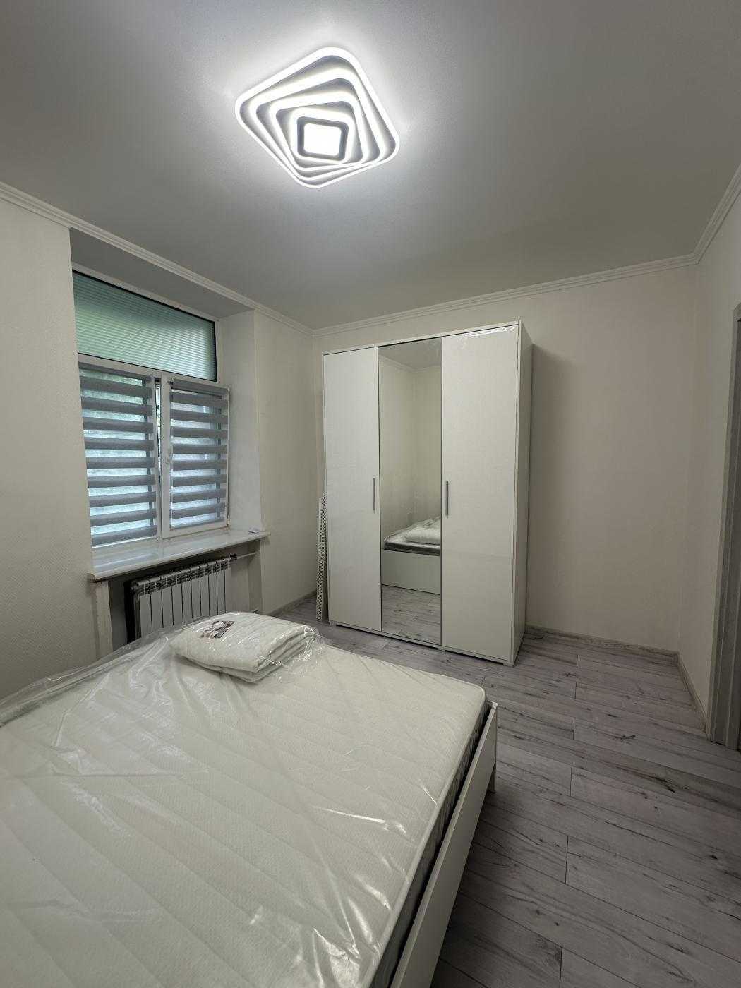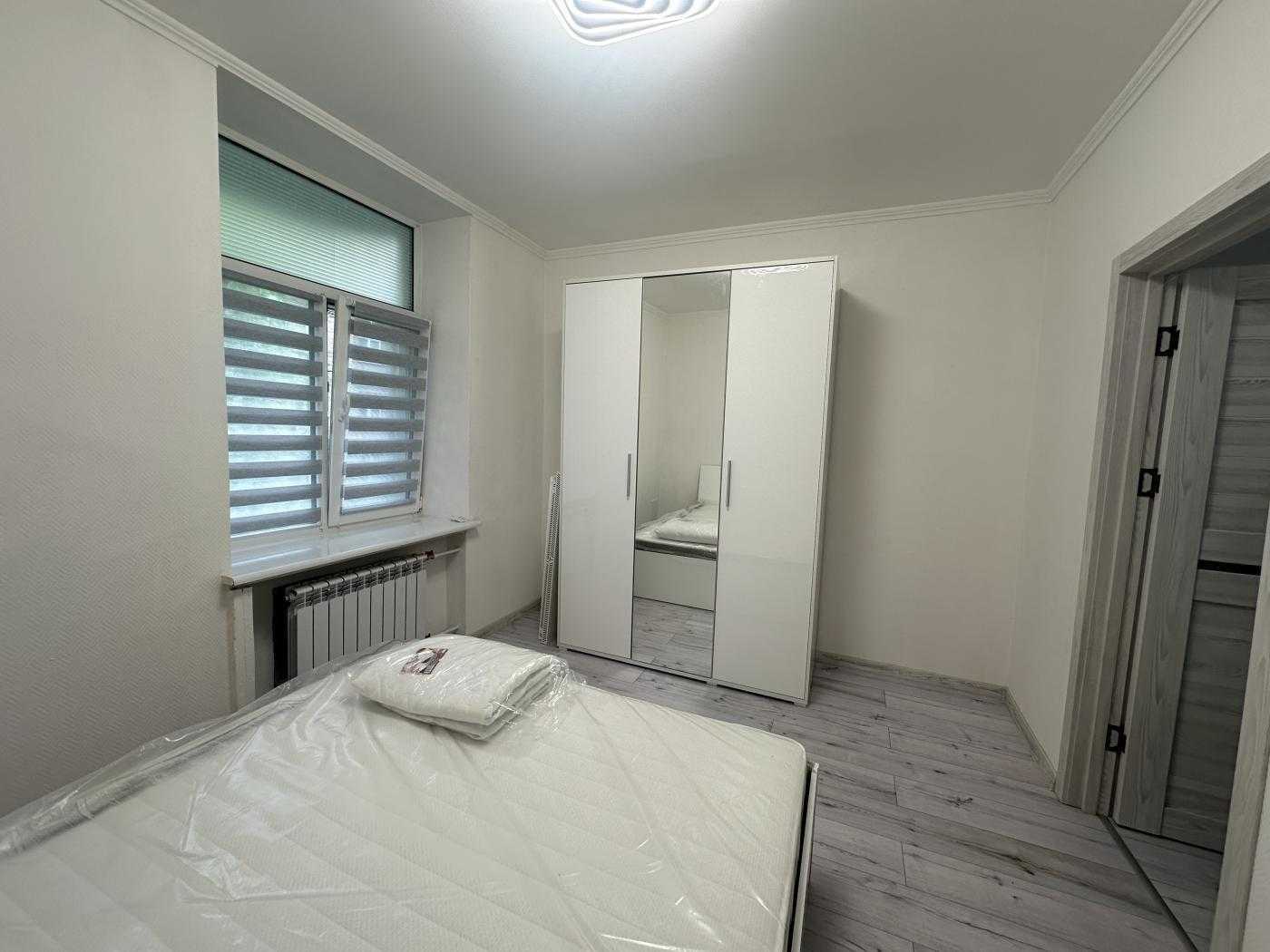 Світла 2-кімнатна квартира на вул. Табірна 40, всього за 5 хвилин від метро Берестейська. Загальна площа 48 м², з окремими кімнатами та суміжним санвузлом. Кухня площею 8 м² обладнана сучасною газовою плитою, витяжкою та духовкою. У квартирі є кондиціонер, пральна машина, холодильник та пилосос. Спальня має двоспальне ліжко та шафу для зберігання речей. Інфраструктура включає супермаркети, ресторани, школи та поліклініку в пішій доступності.
