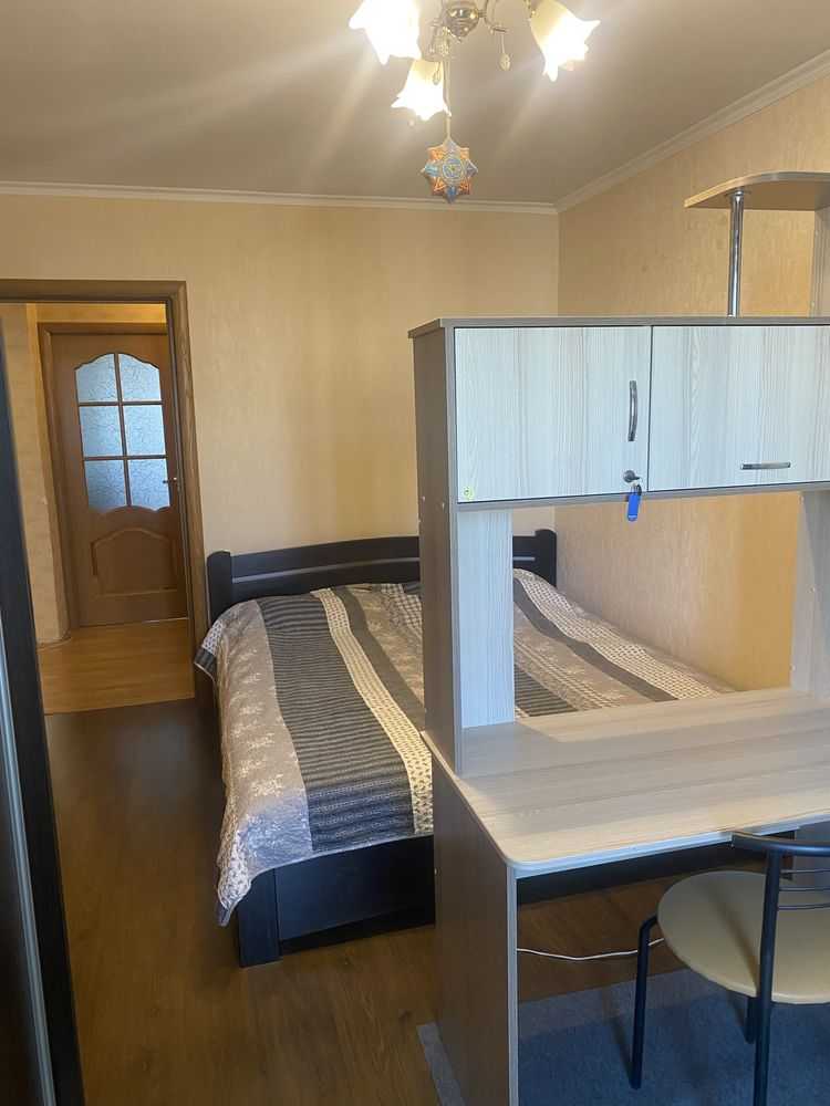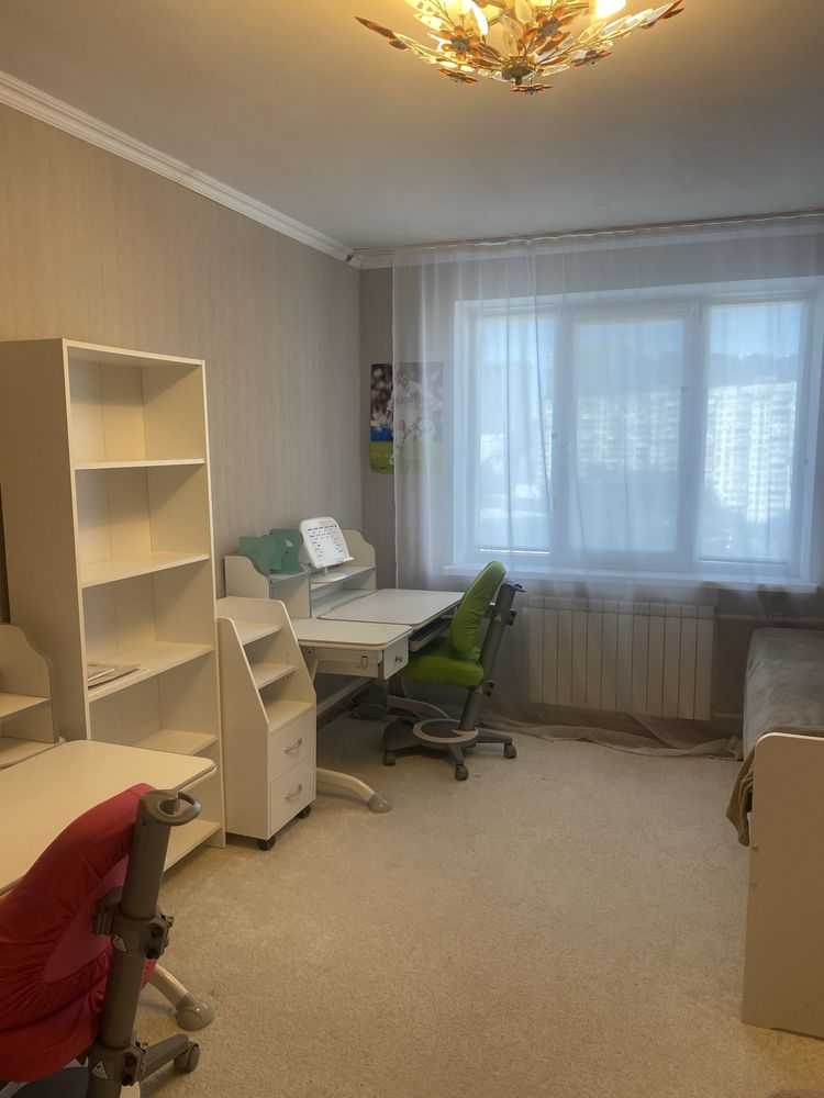 Квартира розташована на вул. Голосіївській 10, на 12-му поверсі 16-поверхового будинку. Містить дві окремі кімнати, розділені по плануванню. Площа квартири складає 55 м², включаючи кухню 8 м² та санвузол, що також є окремим. Дві засклені лоджії додають додатковий простір. Є комора для зберігання речей. Квартира двостороння, що забезпечує хорошу природну освітленість. Зручне розташування, підходить для проживання з дітьми.