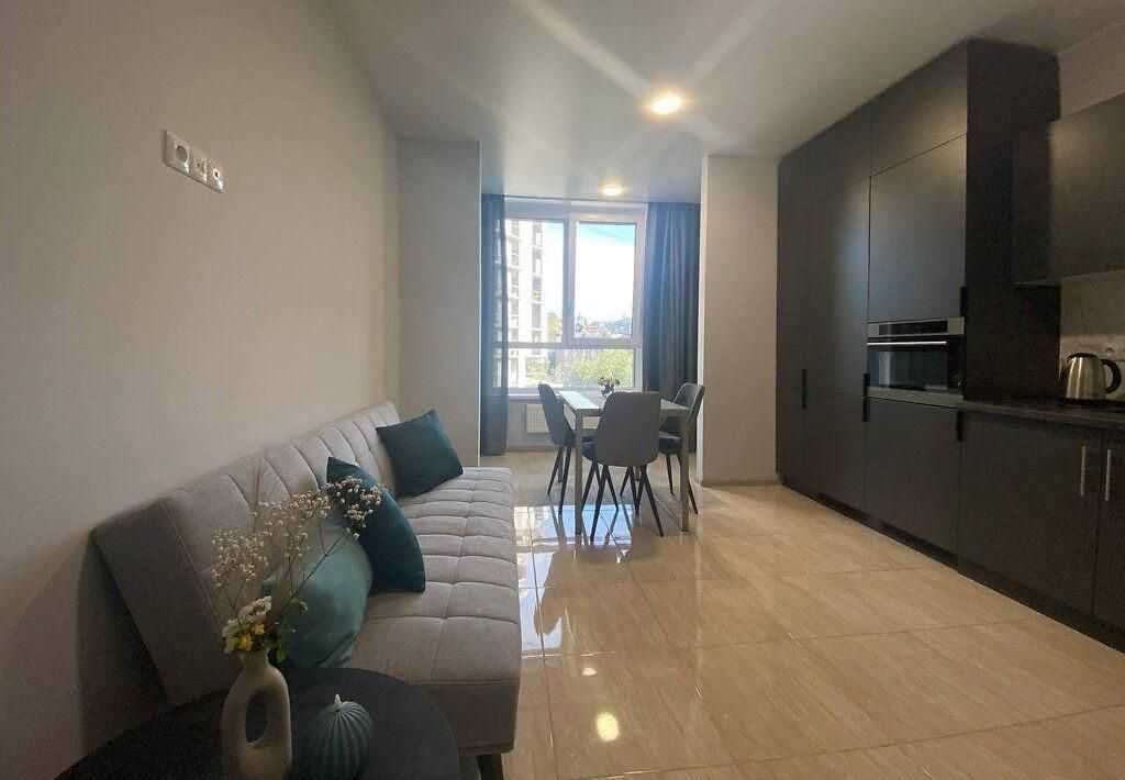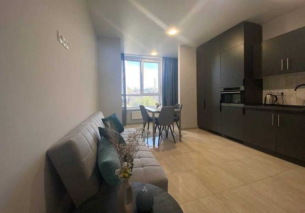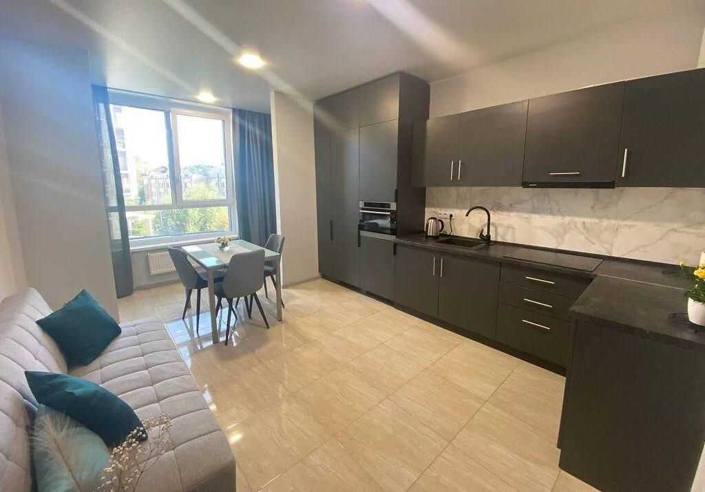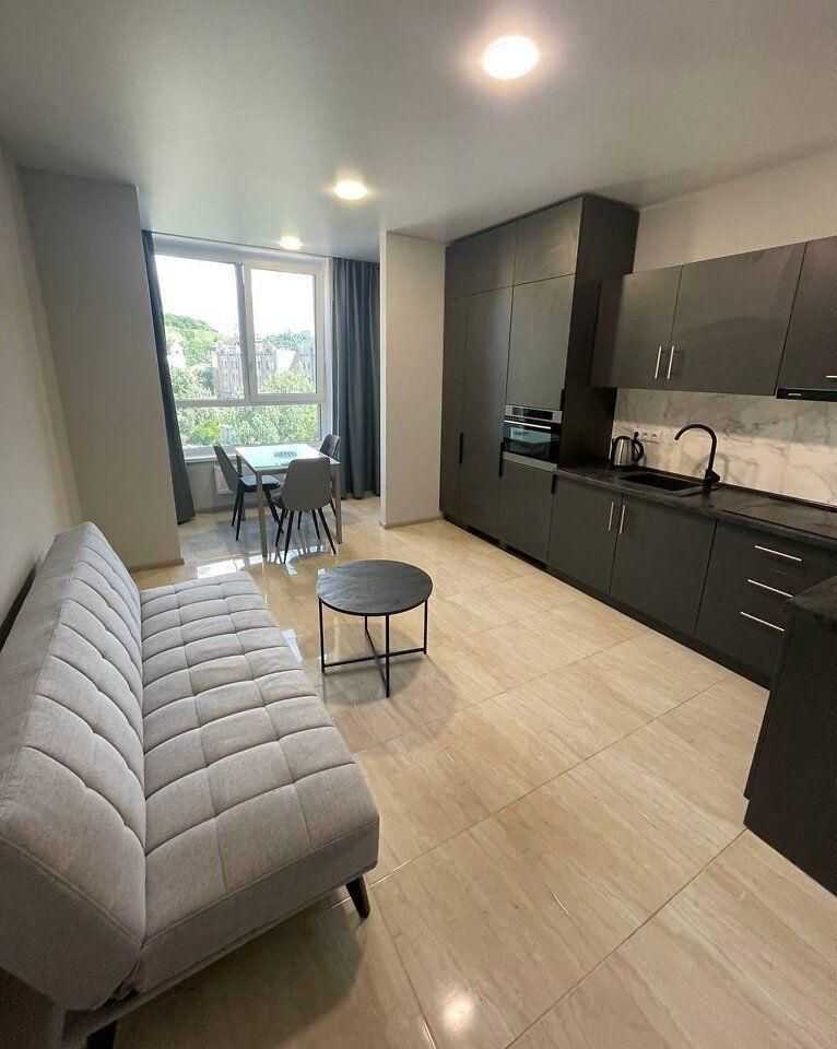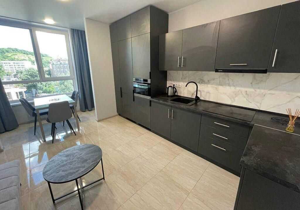 1-кімнатна квартира на вулиці Глибочицька 73, в районі Шевченківський. Розташована на 4 поверсі монолітно-каркасного будинку новобудови. Загальна площа становить 57.4 м², а площа кухні - 19,5 м². Квартира з дизайнерським ремонтом, обладнана меблями та технікою.