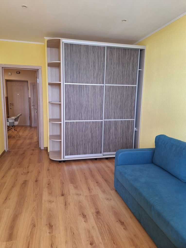 Пропонується двокімнатна квартира у Святошинському районі, розташована на 22-му поверсі за адресою вул. Львівська 22/25. Загальна площа 56 м², з окремими світлими кімнатами 22 та 16 м². Квартира обладнана кондиціонером, сумісним санвузлом, бойлером та приладами обліку для води, електрики і індивідуального опалення. Батареї з можливістю регулювання забезпечують економію на опаленні. Квартира з євроремонтом та резервним живленням. Поблизу зупинки транспорту, 5 хвилин до станції метро.