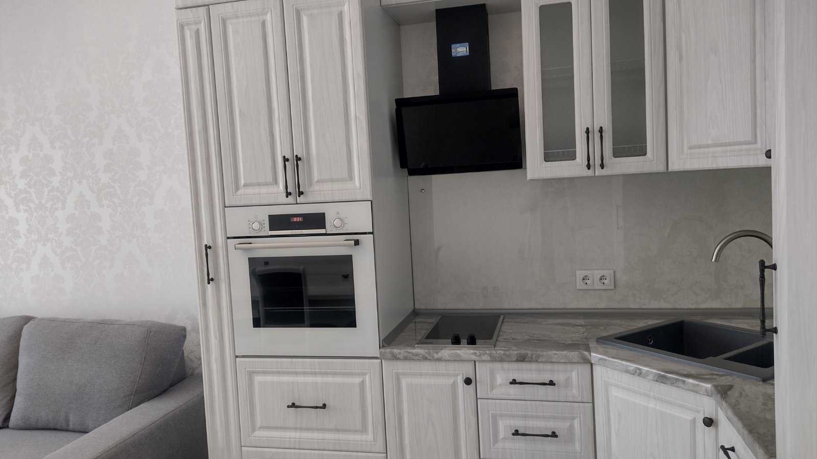 Світла та затишна квартира розташована у Києві, Дарницький р-н, на вул. Гмирі 12 Б. Площа 69 м², розташована на 23 поверсі 25-поверхового будинку. Квартира складається з двох окремих спалень, кухні-студії, двох санвузлів (один з ванною, другий з душкабіною) та коридору. Оснащена вбудованою технікою, пральною машиною, бойлером, кондиціонером та якісними меблями. Дизайнерський ремонт, вітражні вікна. У будинку є генератор, три ліфти, конс'єрж. Інфраструктура: поруч метро Позняки/Осокорки, зупинки транспорту, магазини.