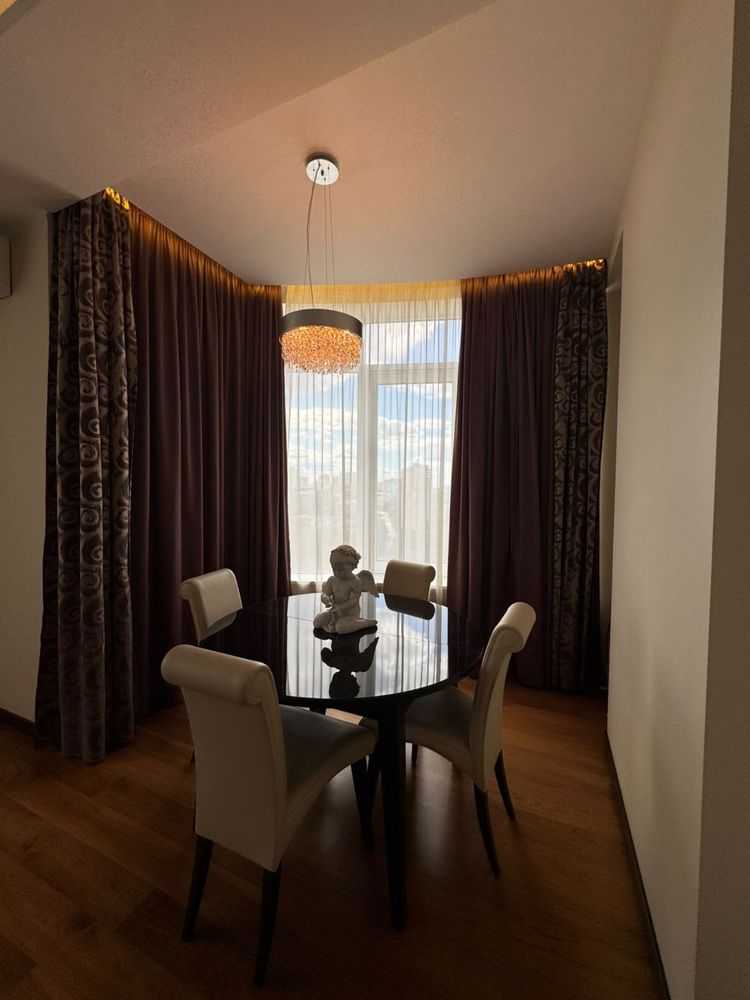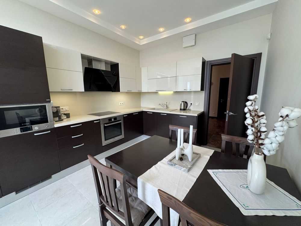 Стильна 4-кімнатна квартира у престижному житловому комплексі «Смарагдовий». Простора кухня-студія, 3 окремі спальні, 2 санвузли, гардеробні. Виконано якісний ремонт з використанням натуральної паркетної дошки та плитки європейських виробників, тепла підлога, італійські меблі, вбудована техніка Bosch і Siemens. Закрита територія з охороною, дитячі майданчики, зони відпочинку та підземний паркінг. Розвинута інфраструктура: спортивний комплекс, супермаркети, кафе.