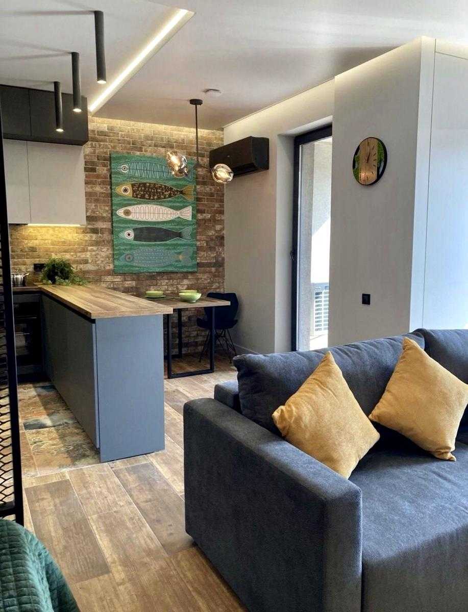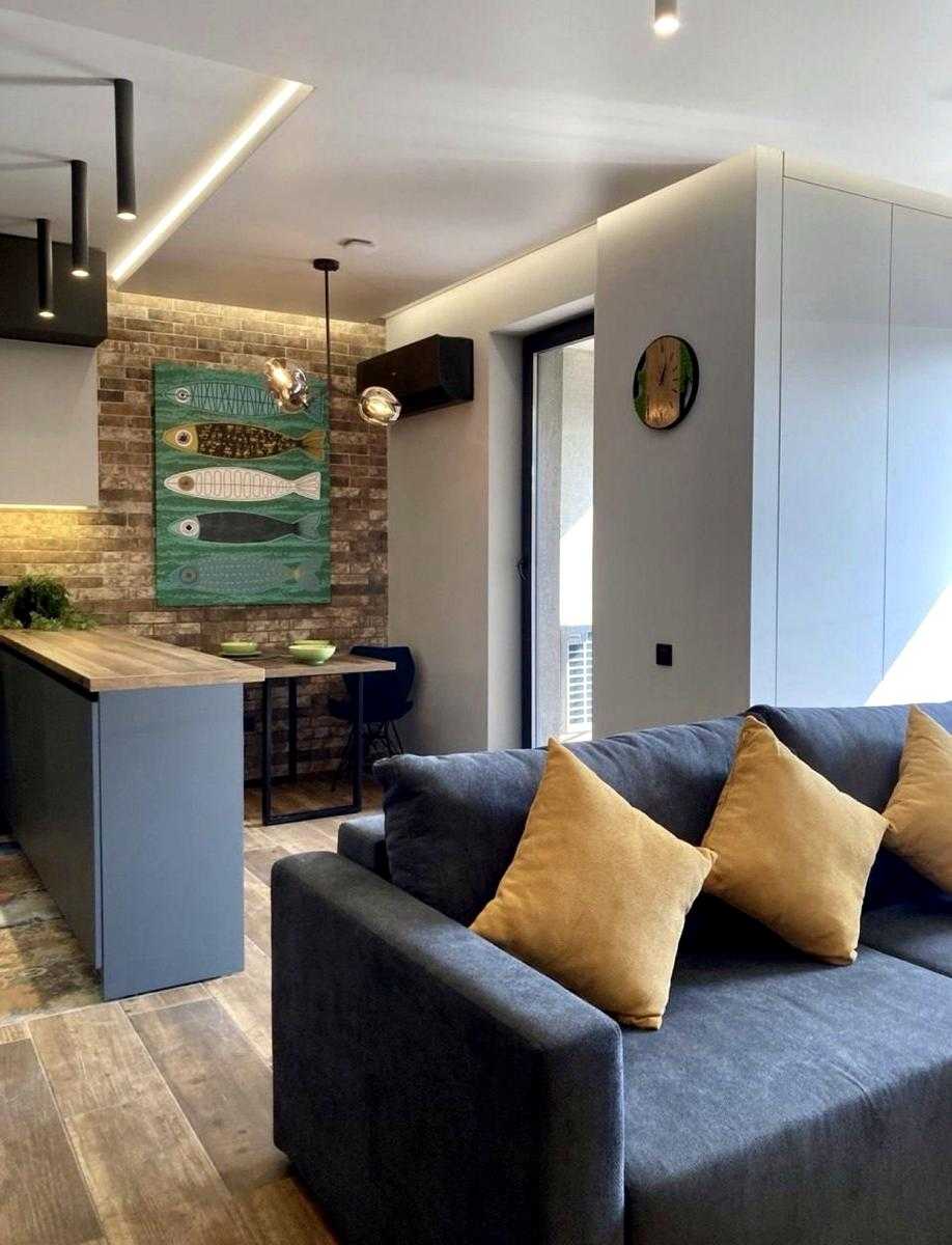Квартира розташована в ЖК Житловий район Rybalsky на Набережно-Рибальській дорозі, 3. Просторе планування включає кухню-вітальню, спальну зону та ванну кімнату з душовою кабіною. Житло має стильний дизайнерський ремонт з використанням сучасних матеріалів. Оснащене новою технікою: пральною та посудомийною машинами, смарт-телевізором, мікрохвильовою піччю, кондиціонером та бойлером. На території комплексу доступні кафе, супермаркет, поліклініка, школа та дитячий садок. Поруч – спортивний комплекс «5 елемент» та ТРЦ «Блокбастер».