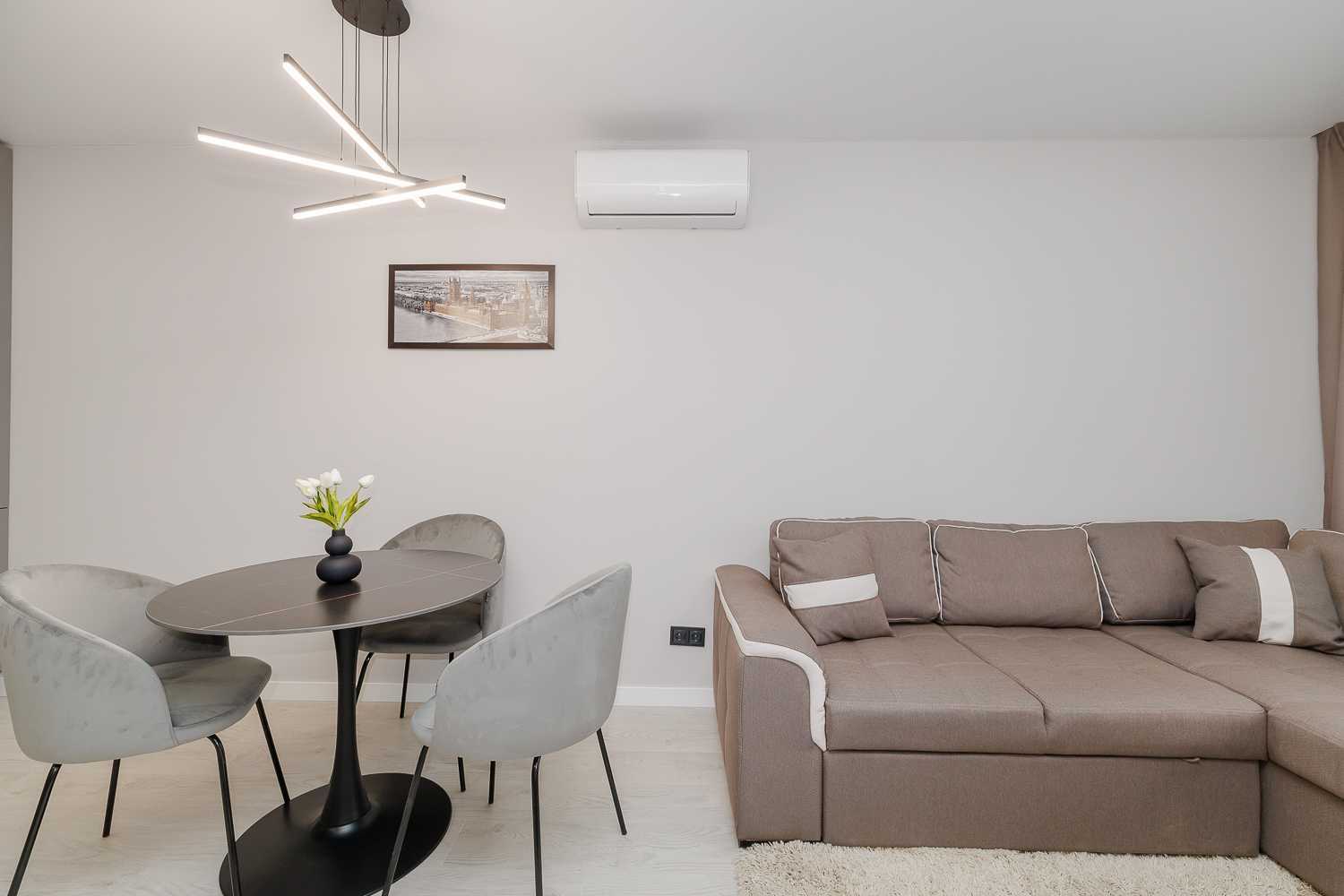 Пропонується 1-кімнатна квартира з сучасним ремонтом у ЖК «Нова Англія», на 13-му поверсі будинку «Лінкольн». Загальна площа – 41,14 м². Квартира має роздільне планування: кухню-вітальню та окрему спальню. Оснащена вбудованою технікою від відомих брендів. Територія комплексу охайно оформлена з зоною відпочинку та дитячими майданчиками. ЖК закритого типу, що забезпечує безпеку. Зручний доступ до метро «Васильківська» та розвинена інфраструктура поблизу.