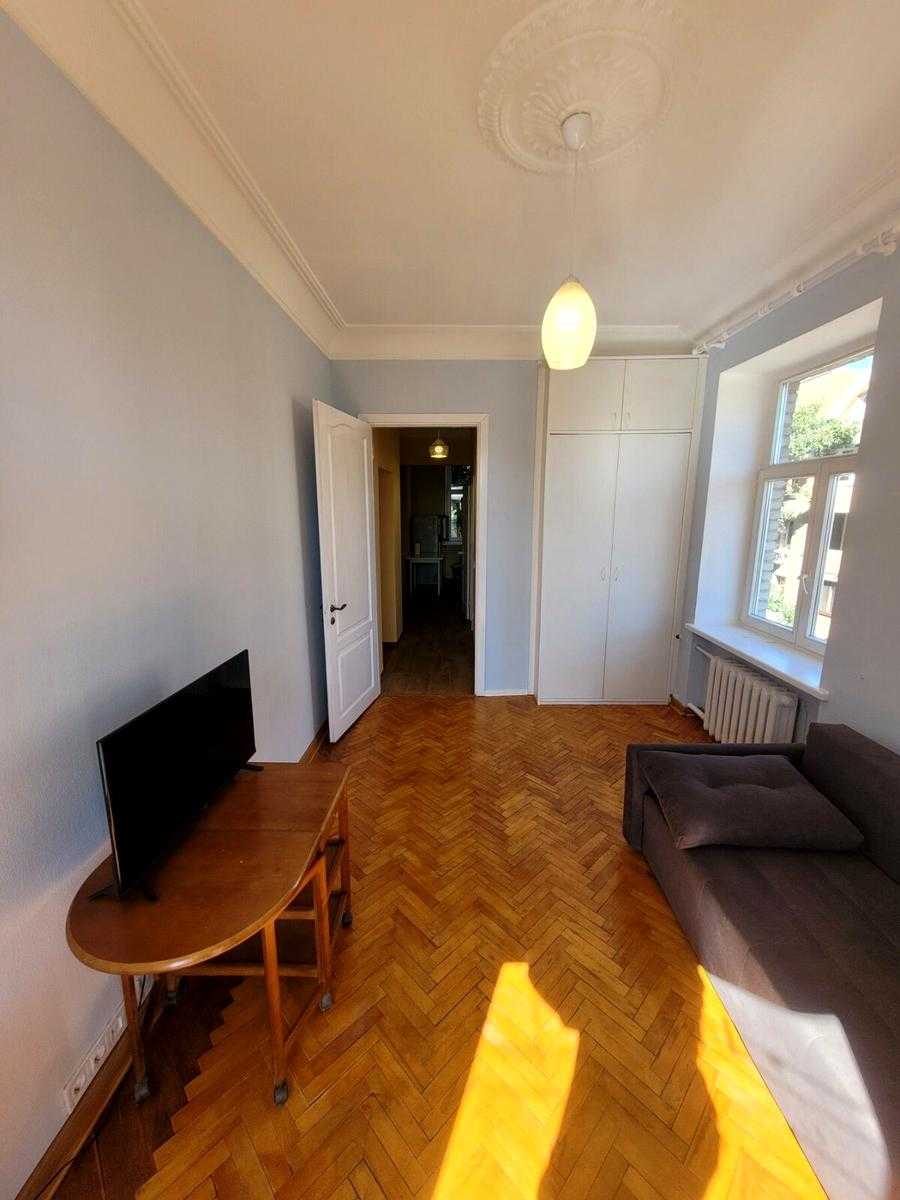 Квартира розташована на вул. Волоська, 18/17 у Подільському районі Києва, поруч з метро Контрактова площа. Це затишний 2-кімнатний апартамент з роздільним плануванням, загальною площею 52 м². Квартира має свіжий євроремонт, укомплектована сучасними меблями та побутовою технікою. В наявності балкон, хоча він не засклений. Житлова будівля - сталінка, зручне розташування в історичному центрі міста.